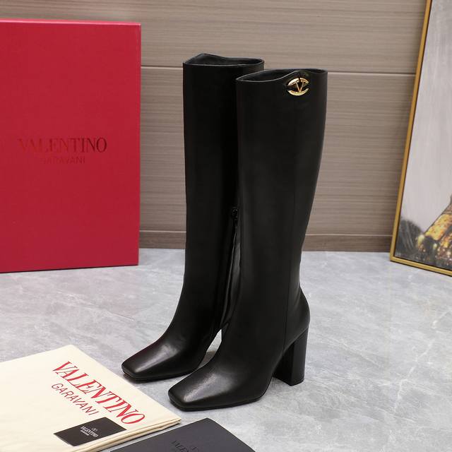 24Ss 秋冬新款 华伦天奴valentino 方头 V扣骑士靴