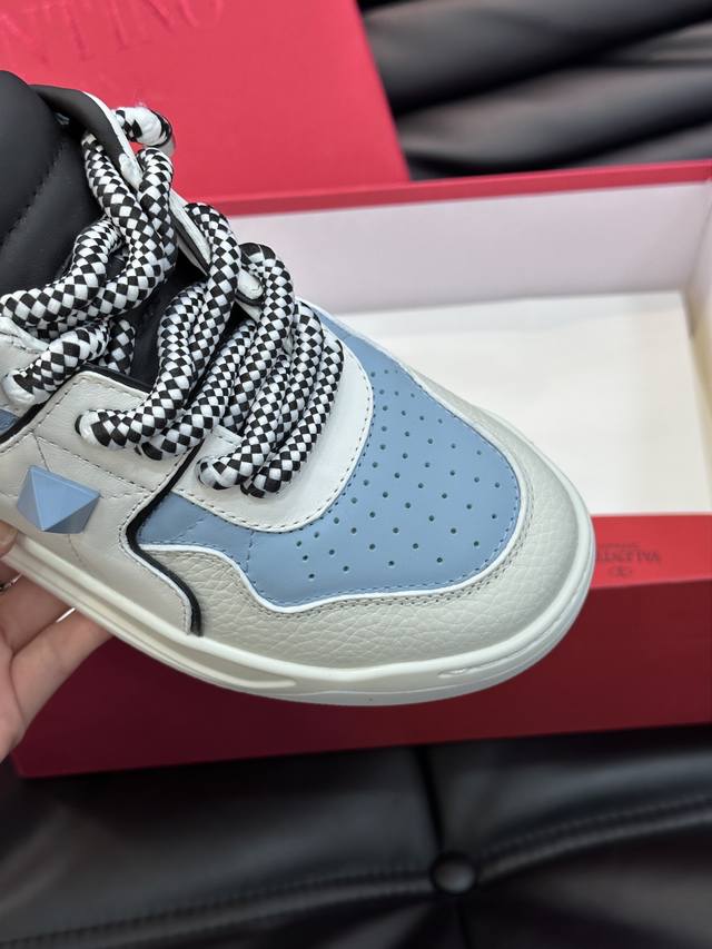 出厂价 实价 华伦天奴 *One Stud系列厚底增高运动鞋,简约明快构造清爽新潮穿搭!衍缝格纹与超大铆钉,打造瞩目朋克风格,考究皮质构塑和简洁轮廓,流畅的线条奠定酷感基调,是最经典的百搭单品!厚底增高5Cm,气场拉满 Size:38-44 45定做