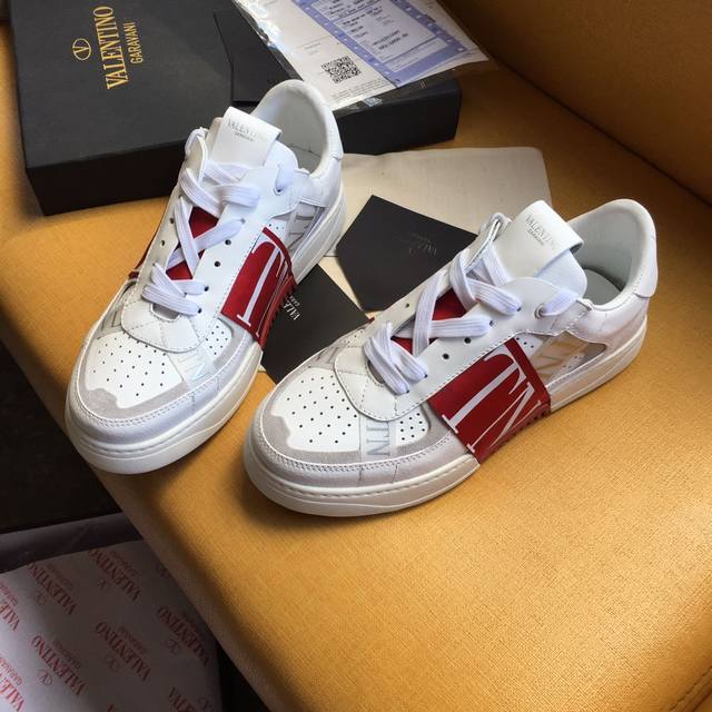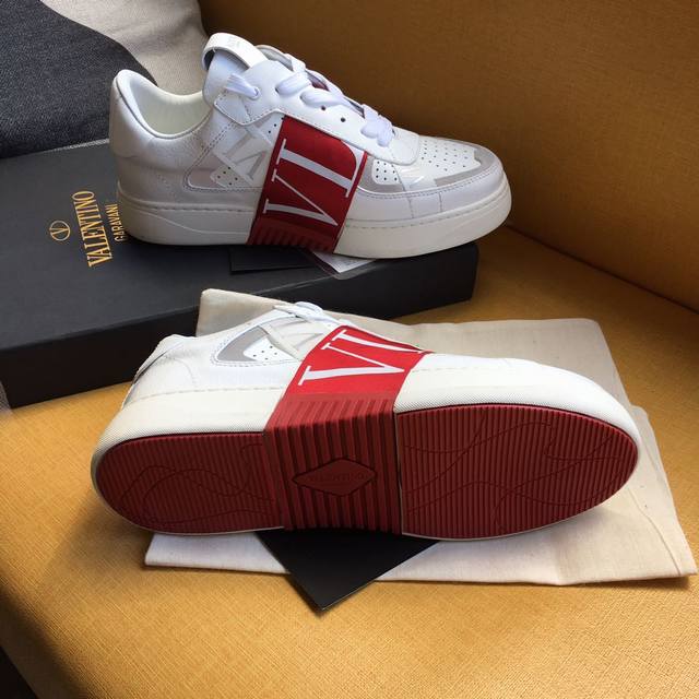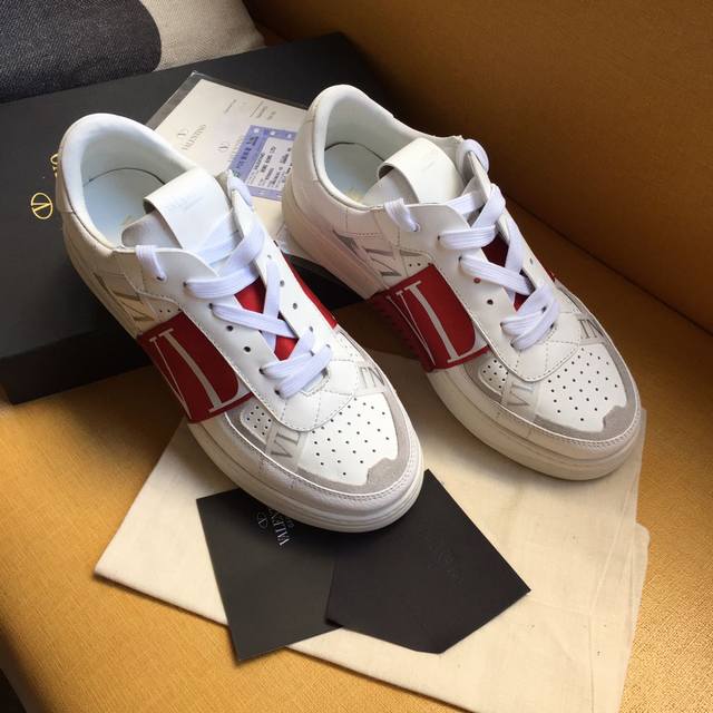 华伦天奴经典小白.原版1比1开发. 面料:头层荔枝纹牛皮+丝绸牛皮+高丝光牛津,内里+垫脚全牛里。做工精细,时尚百搭.码数:38-46