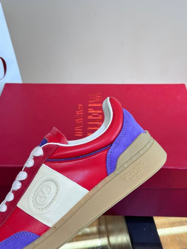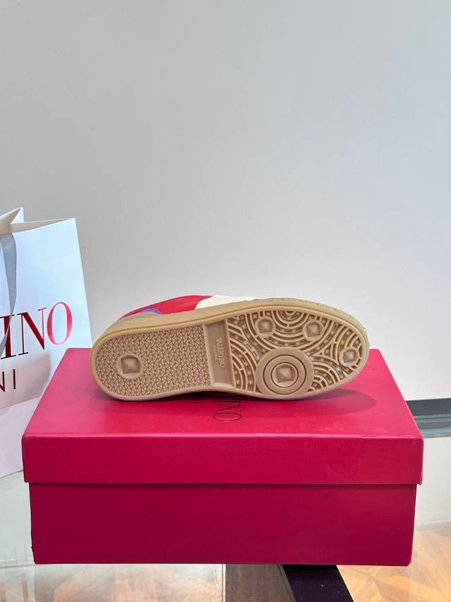 / 实价 Valentin*华伦天奴情侣款休闲板鞋,时尚百搭单品,小牛皮+麂皮反绒重工打造 橡胶鞋底装饰 Vlogo Signature 和铆钉细节 头层牛皮内里,