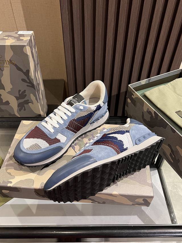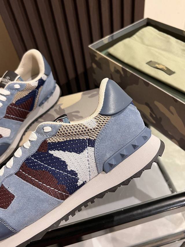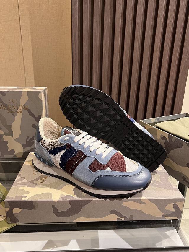 顶级版本 华伦天奴 VLNT经典铆钉迷彩系列原版牛皮、内里及鞋垫,鞋垫采用高弹乳胶铺垫,好看耐穿、潮流指数一直都是、绅士款、超级舒适好穿 配原版包装 现货 38-46码 45,46定做