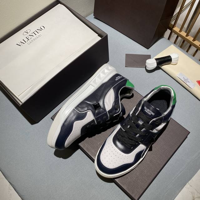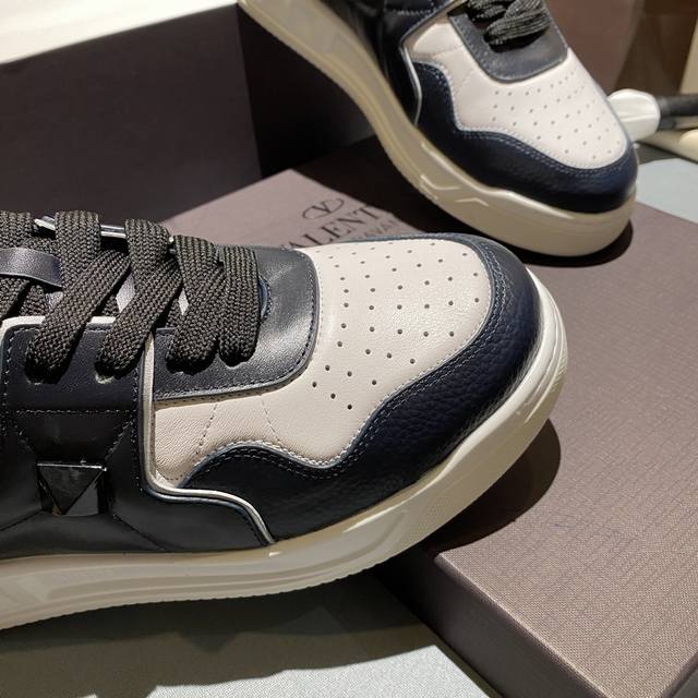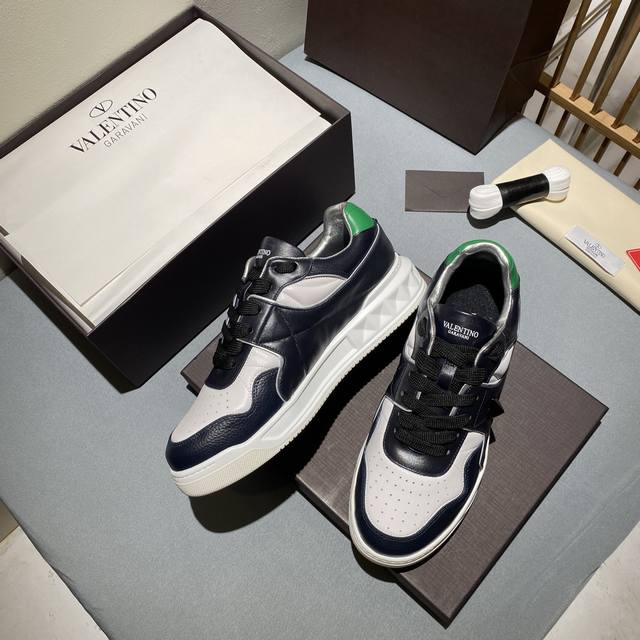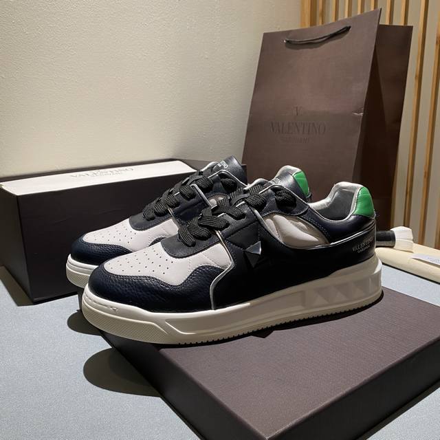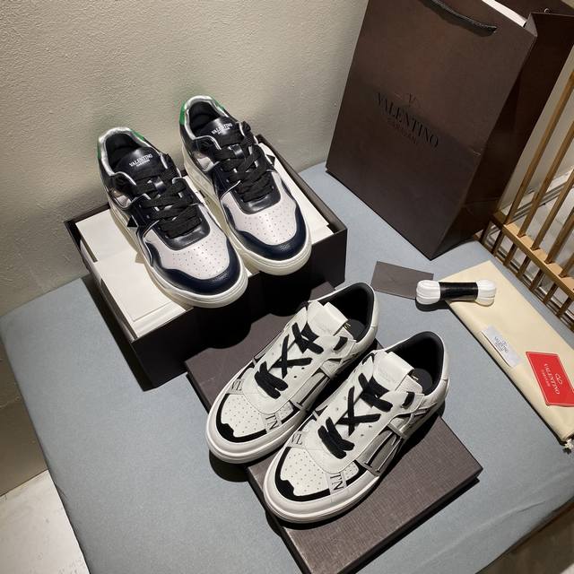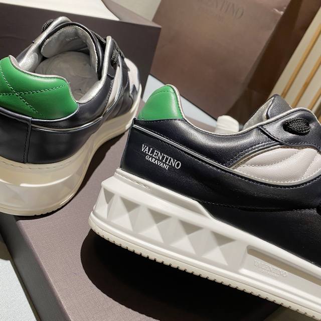 VALENTINO 华伦天奴 最新时装周走秀款,顶级版本,原版1:1套楦,面料采用头层荔枝纹牛皮+超软牛皮,牛皮内里+原版垫脚,配超轻TPU吸膜大底。经典拼色.时尚百搭!Size:38-45