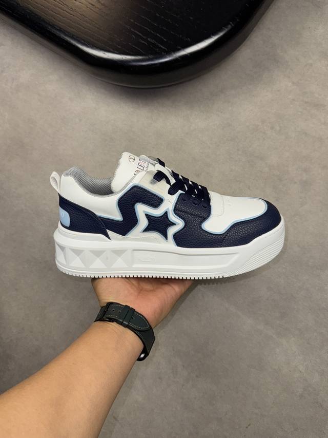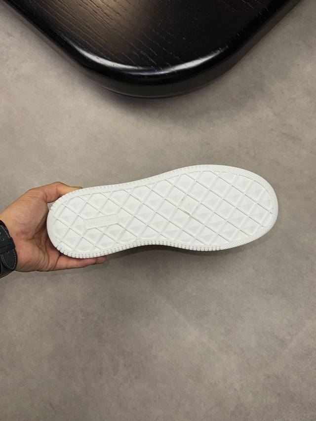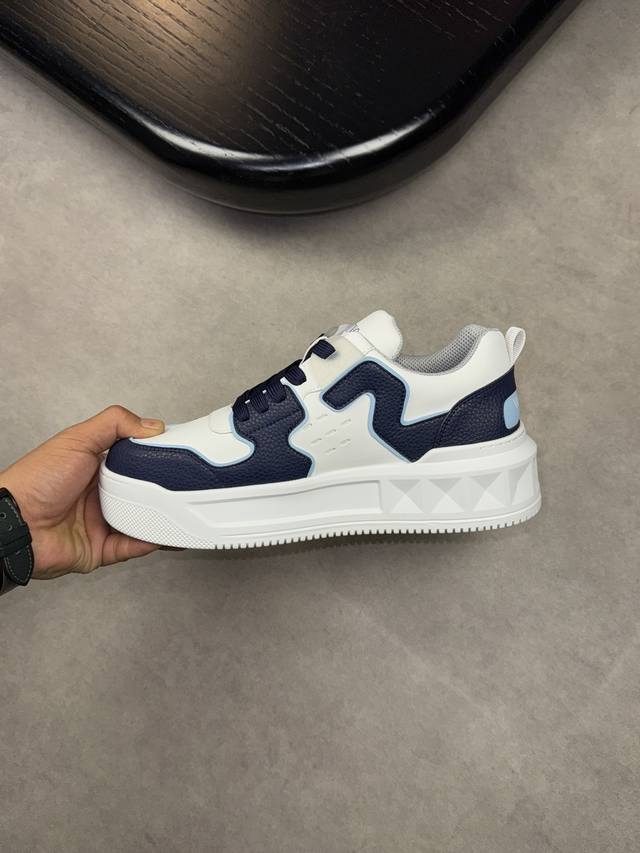 -鞋面:丝绸小牛皮、摔纹小牛皮、车缝品牌塑胶模块、后跟丝印品牌logo