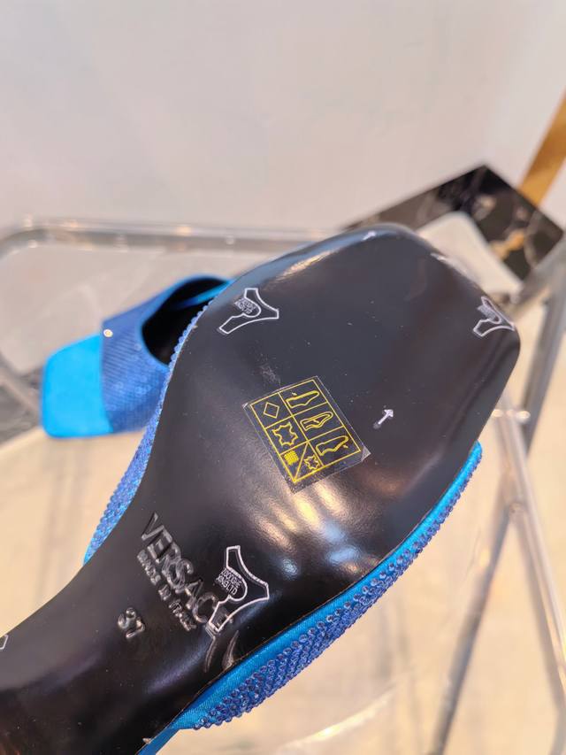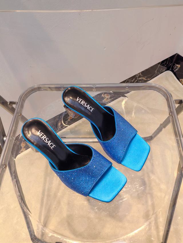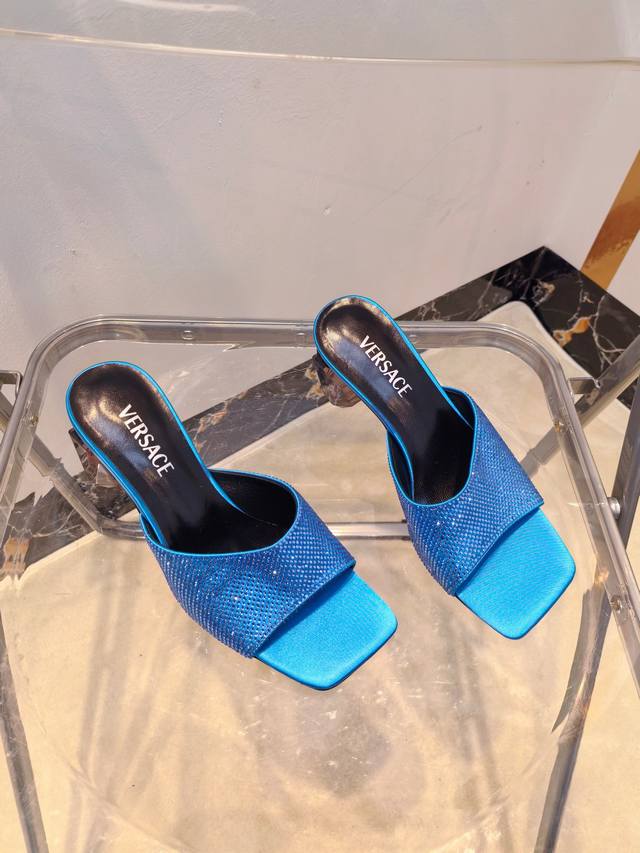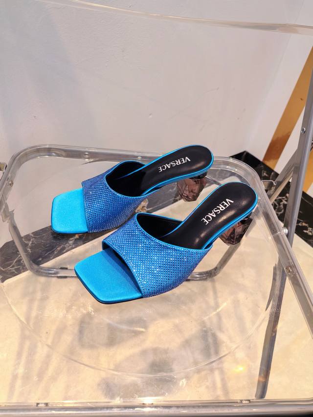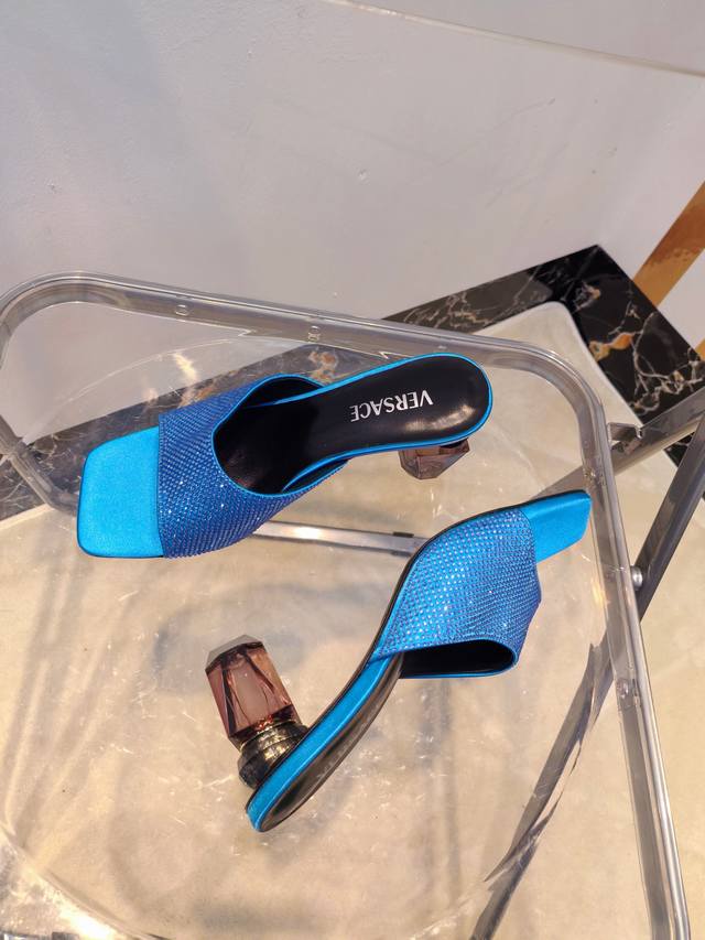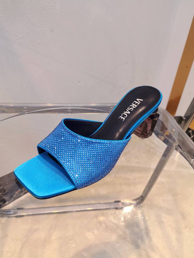 / 工厂出390Versace范思哲 专柜新款,香水瓶水晶跟 系列拖鞋 鞋面:真丝烫钻 内里垫脚:羊皮 跟高:7Cm 鞋底:真皮大底 码数:35-42码(//42定