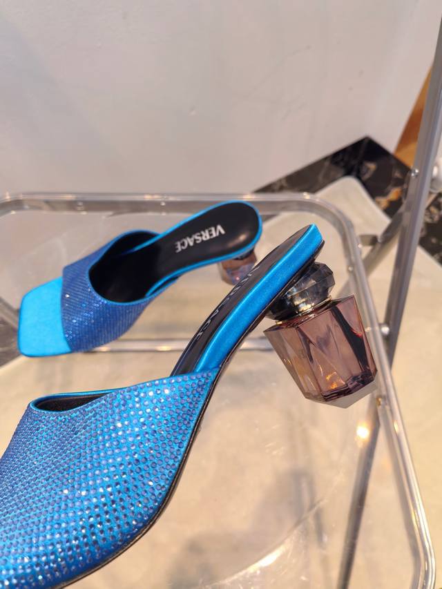 工厂出390Versace范思哲 专柜新款,香水瓶水晶跟 系列拖鞋 鞋面:真丝烫钻 内里垫脚:羊皮 跟高:7Cm 鞋底:真皮大底 码数:35-42码(//42定