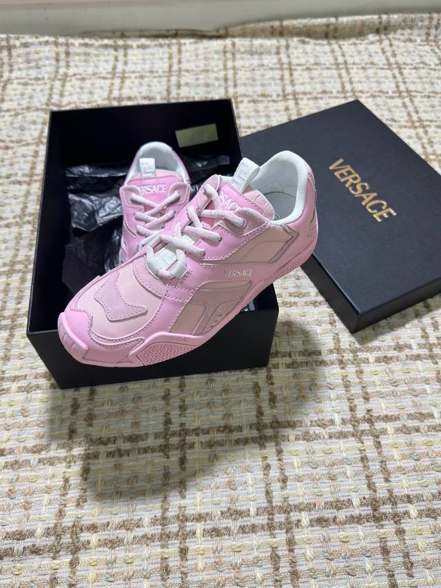 Versace Odissea 艺术感超强的德训鞋,非常轻便舒适,整双鞋很具备结构感和线条感,干净利落也能让造型充满很强的视觉冲击力,奢华感的logo设计,艺术雕塑般的造型,鞋底设计很有未来感,线条流畅动感十足,非常时髦的一款运动鞋!
