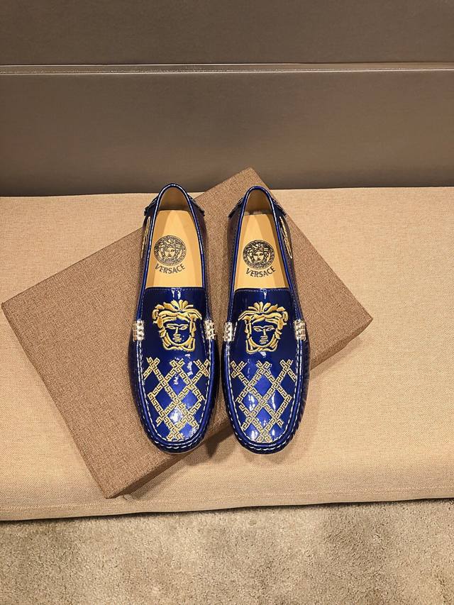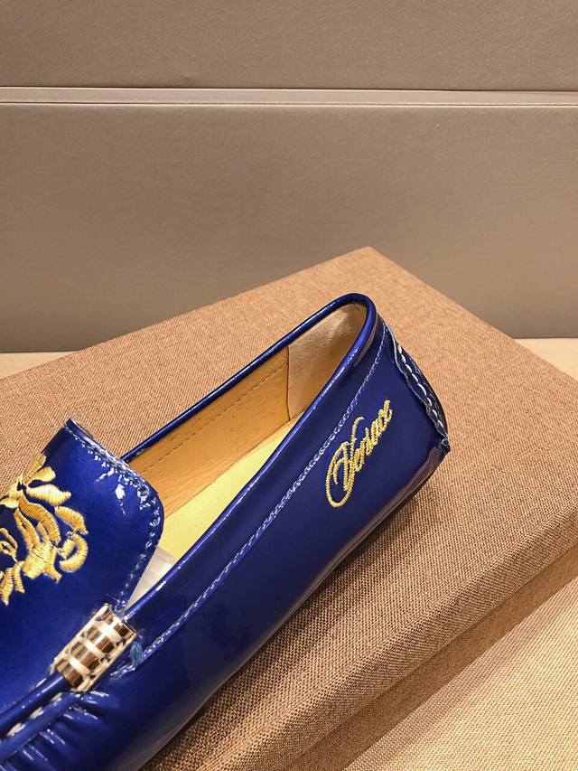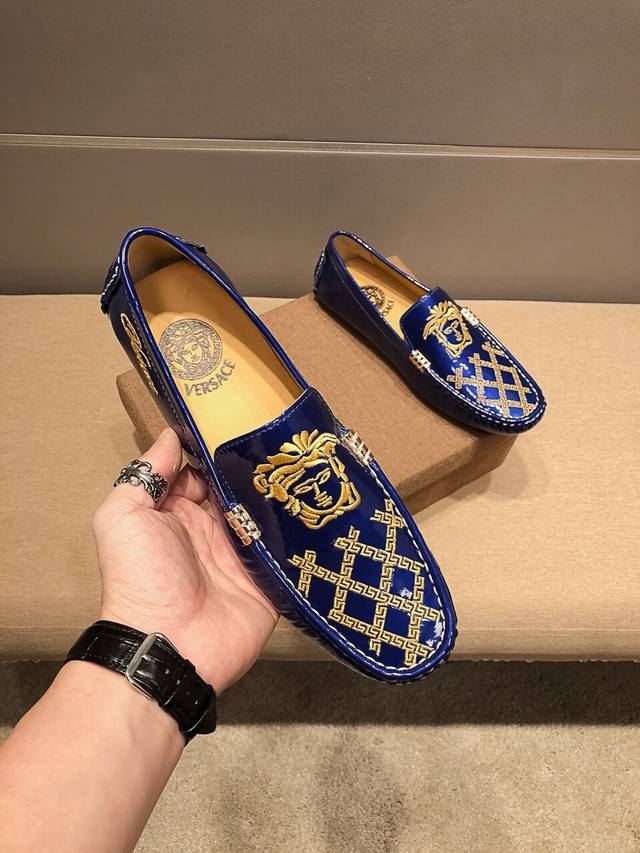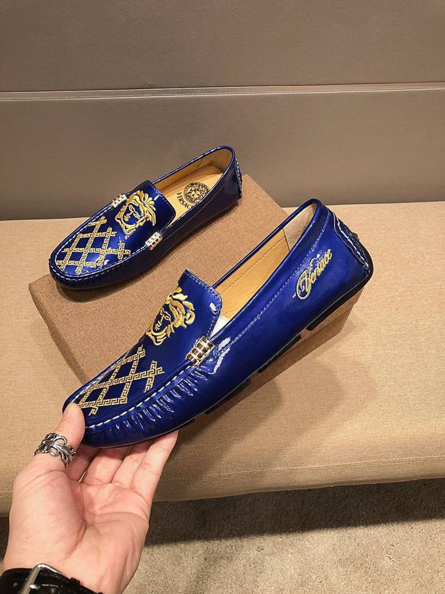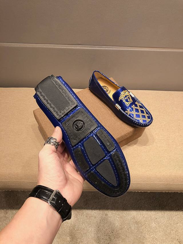 范思哲官方旗舰店豆豆鞋系列官方新款来袭,原版质量男士休闲套脚豆豆鞋,原版意大利进口小牛漆皮+刺绣羊皮里;配有精密逢线,彰显低调奢华,舒适的鞋底设计最大限度保证了穿着的舒适及防滑性,鞋型端庄,低调魅力无所掩盖!自然洒脱的新都市主义,开车鞋,标准码数37-45