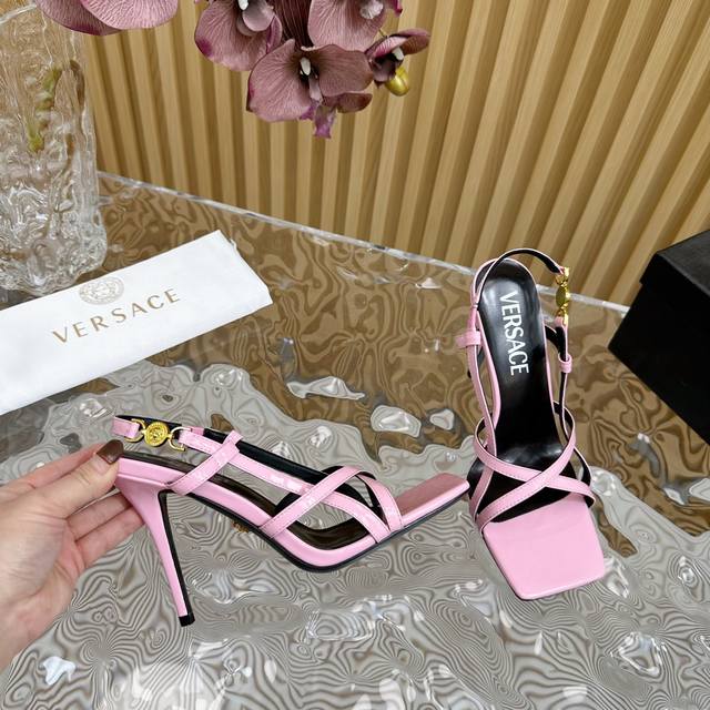高版本versace 范思哲2024春夏新款条带高跟凉鞋,专柜同步发售