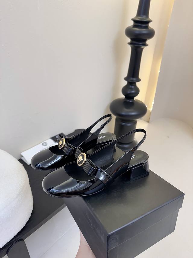 / 360 versace 范思哲2025春夏新款蝴蝶结 粗跟圆头玛丽珍后空凉鞋! 米兰秀场同简约干练的版型 鞋面采用软漆皮 内里垫脚进口羊皮 意大利进口原色真皮大