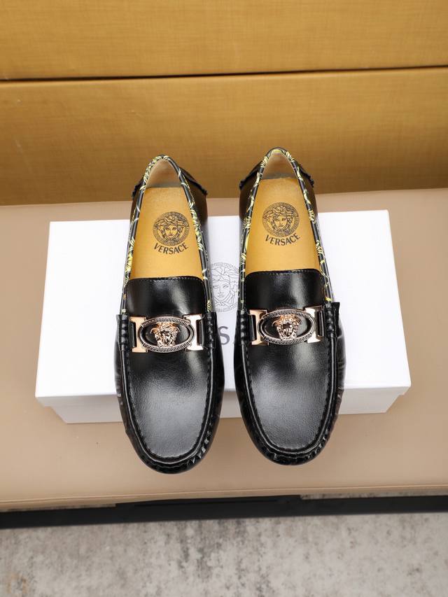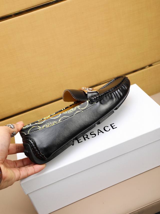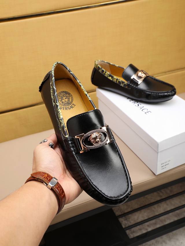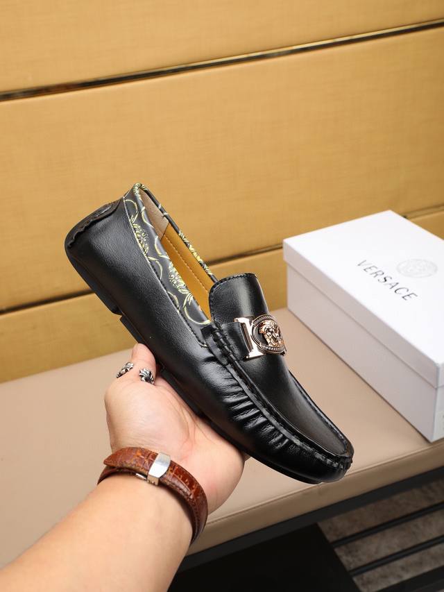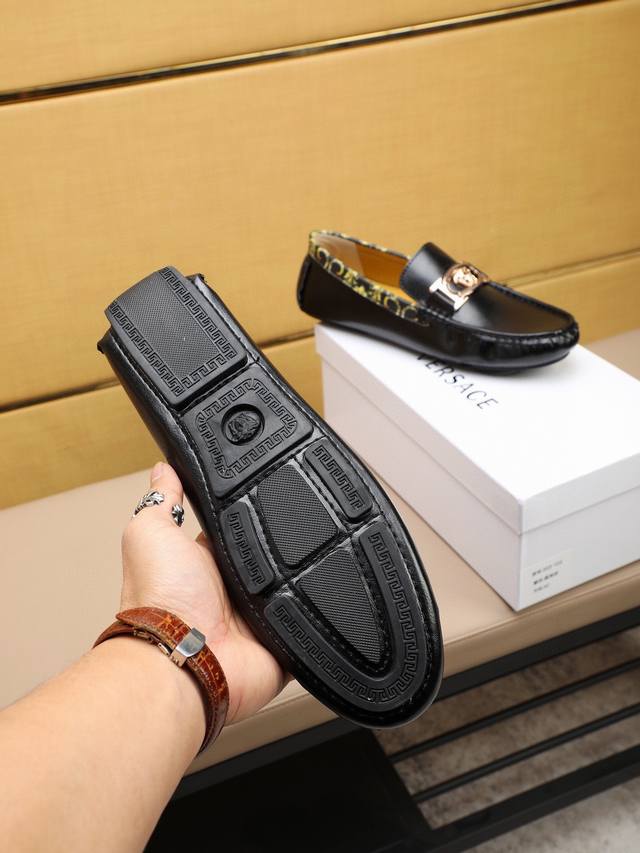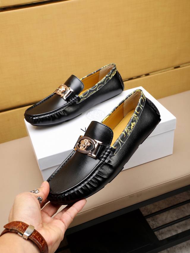 Verace 范思哲男士四季休闲豆豆鞋,最新元素潮爆全球,官网火爆热卖,官方原单,专柜一比一,鞋面意大利进口原版头层牛皮性感美灶莎头像金属扣,原版防滑大底,舒适