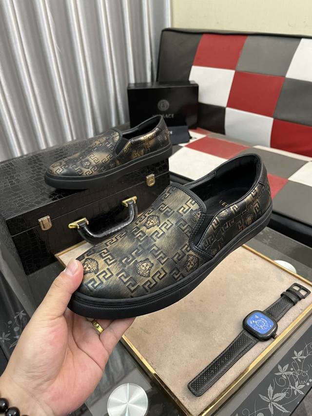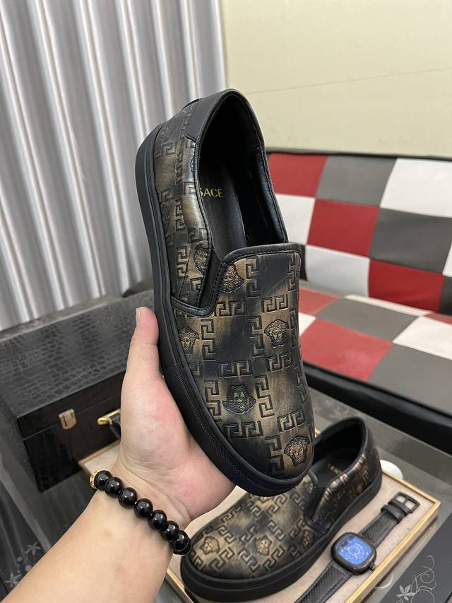 出厂价: 范思哲versace* 最新爆款休闲鞋,顶端品牌奢侈~代购,顶级~质量。鞋面選用进口透气牛皮搭配布料材质透气羊皮垫脚 精细做工。码数: 38-443色可选