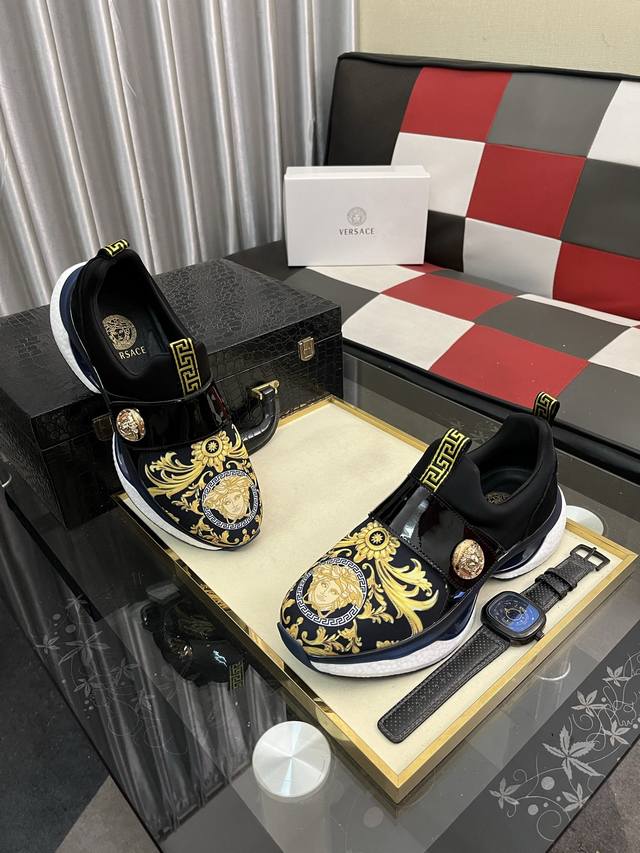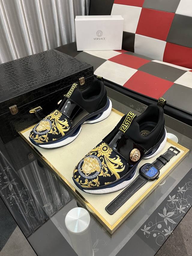 / 出厂价pp: Versace 范思哲最新款精心打造,引爆全场!不断创新的国际品牌 此款男士四季款休闲鞋,牛皮鞋面羊皮内里橡胶大底,透气舒适以质量说话 码数:38