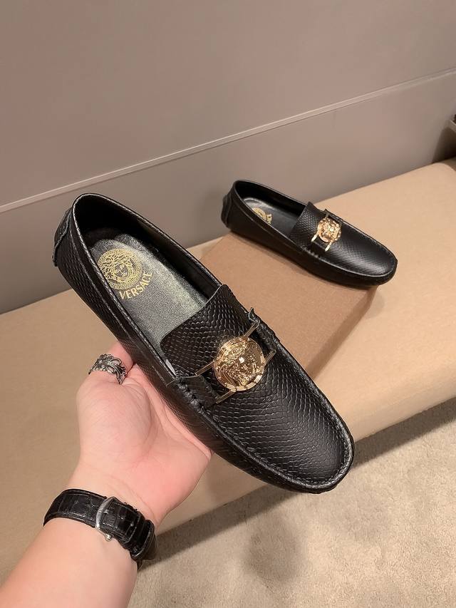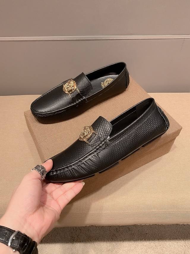 出厂价 Versace 范思哲顶级板鞋系列 新米兰男时装周休闲套脚款 鞋面采用进口小牛皮超滑质感 拒绝褪色磨脚 环保全牛里吸汗透气...