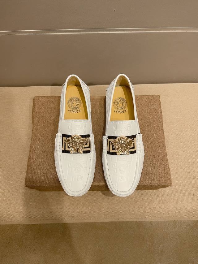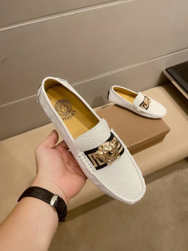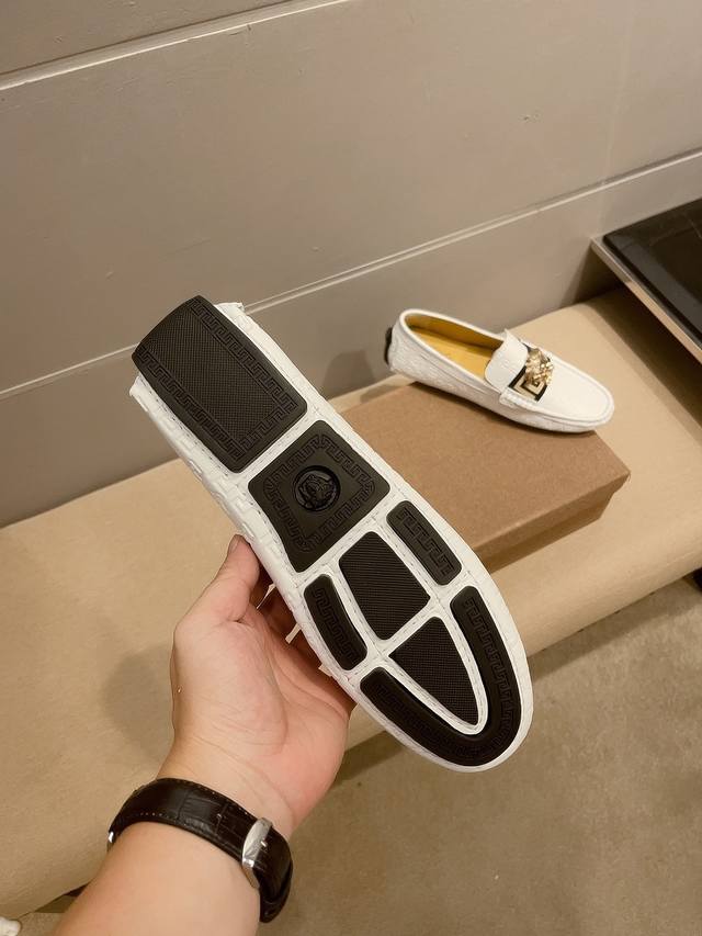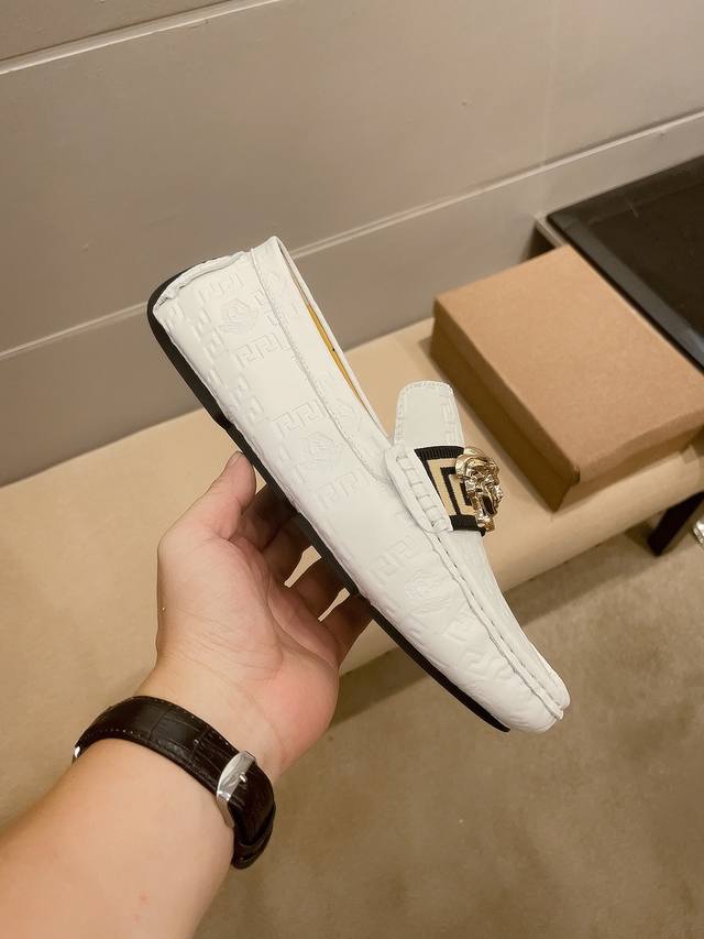 实价 Verace 官方新款,范思哲原版商务休闲豆豆鞋,最新元素潮爆全球,官网火爆热卖,来自法国巴黎名媛贵族棒棒版,现香港中环置地店限量发售,售价17950港币,原版版本,鞋面意大利进口原版牛皮 绝对高端 原版防滑大底,舒适透气羊皮内里垫脚,舒适以质量说话,送人双倍面子,夜店撩妹神器! 标准码37-45