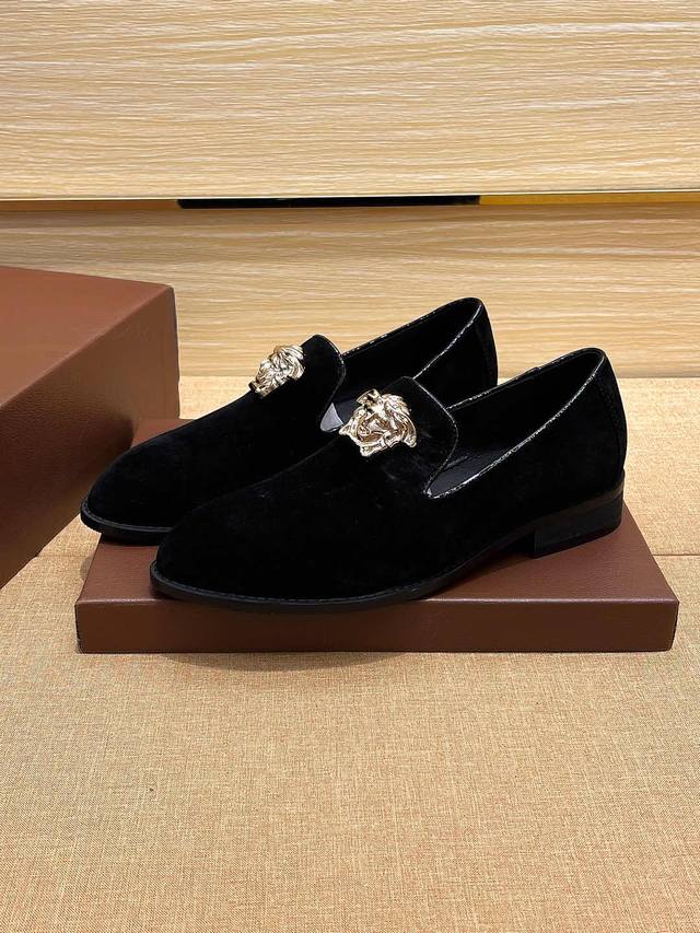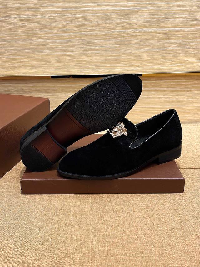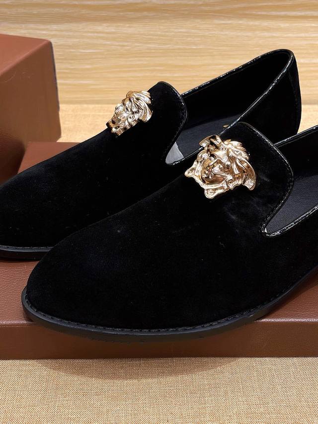实价 Verace 官方新款范思哲男士四季套脚休闲鞋,最新元素潮爆全球,官网火爆热卖,原版版本,专柜一比一,鞋面意大利进口原版头层头层高丝光牛皮性感美灶莎头像金属扣,原版防滑大底,舒适透气吸汗羊皮内里垫脚,舒适以质量说话,送人双倍面子 标准码37-45