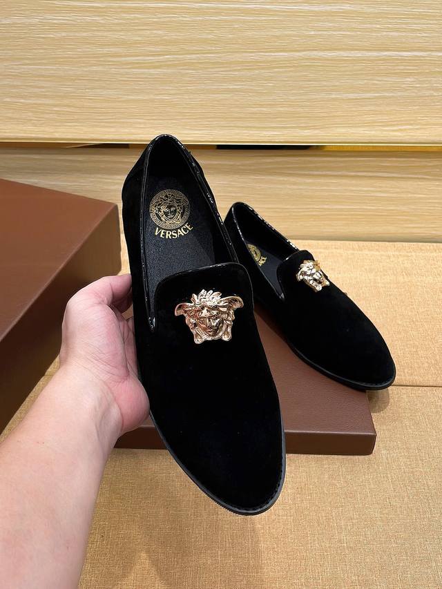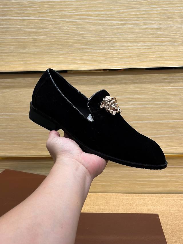 实价 Verace 官方新款范思哲男士四季套脚休闲鞋,最新元素潮爆全球,官网火爆热卖,原版版本,专柜一比一,鞋面意大利进口原版头层头层高丝光牛皮性感美灶莎头像金