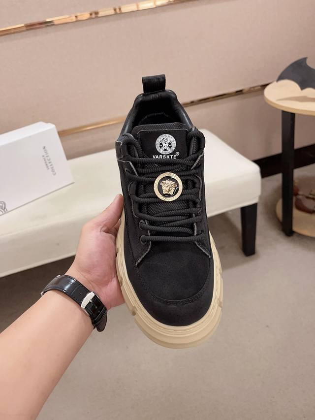 工厂价: 新款versace 范思哲潮流男鞋 新款出货 最新搭配 官网同款 超高品质 当季热卖 精选进口牛皮,舒适保暖内里 原版套楦 上脚舒适 耐磨发泡大底 码数:38-44。