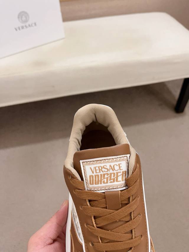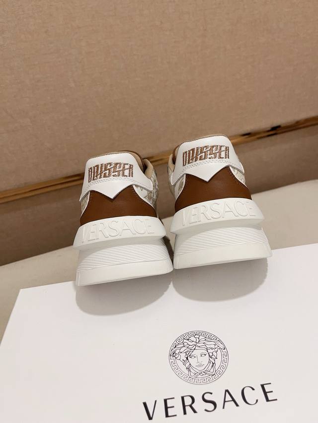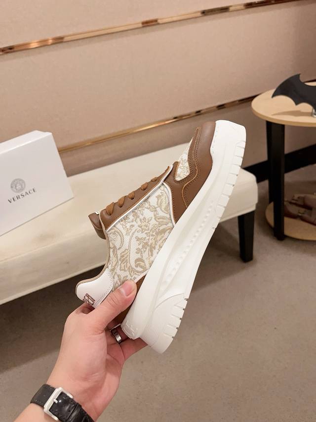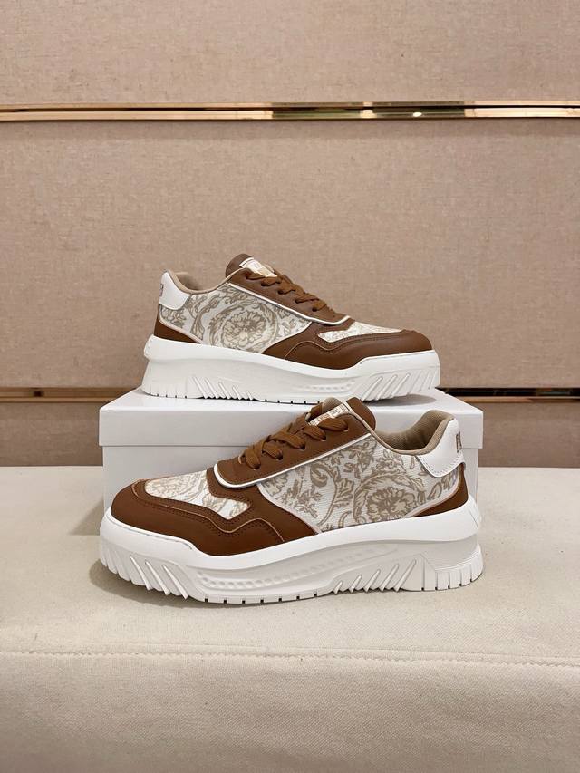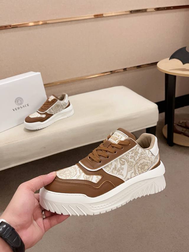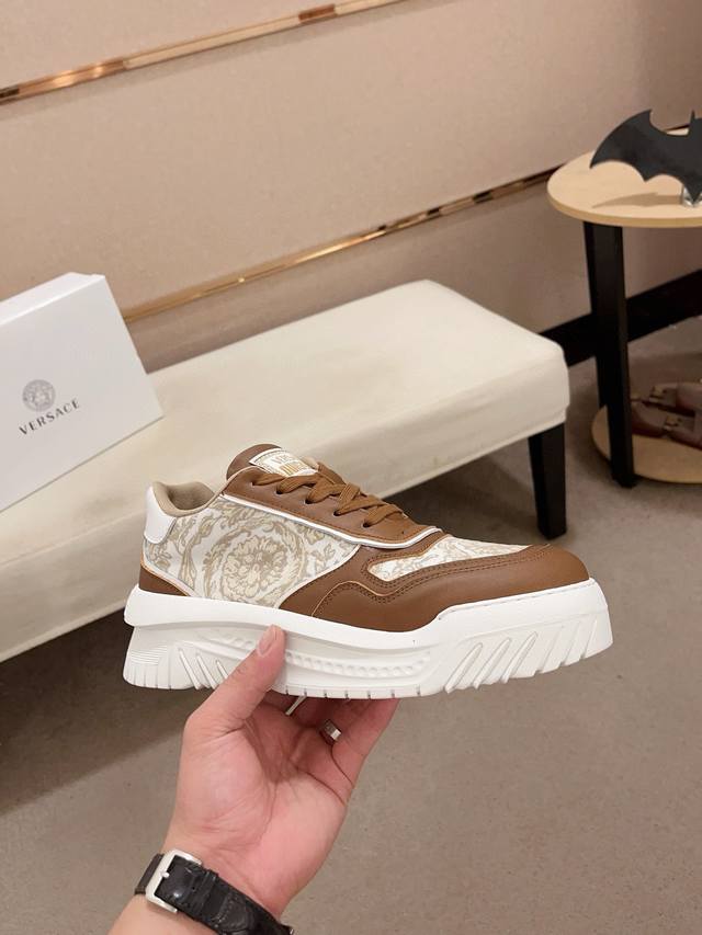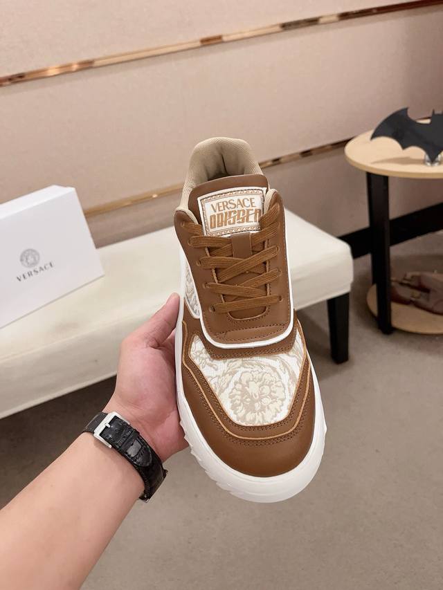 工厂价: Versace 范思哲 新款休闲运动风男鞋,全新春夏季款设计,完美做工,系带懒人款打造装柜品质,鞋面:进口牛皮,羊皮内里柔软舒适,超轻TPU耐磨大底、
