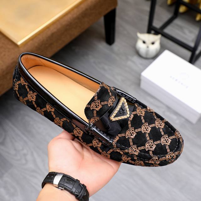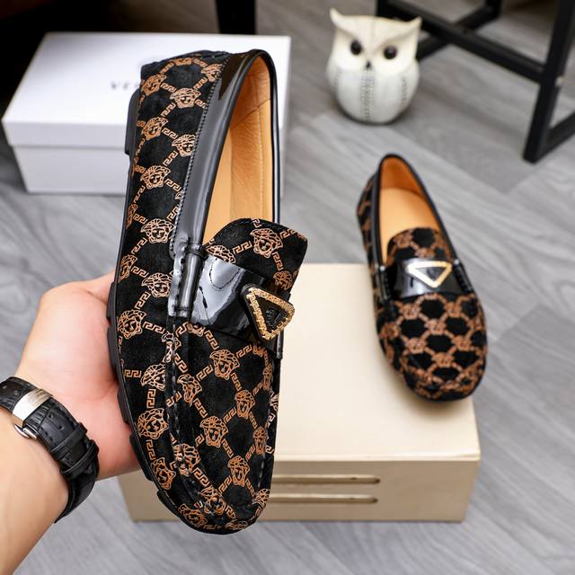/ 工厂价 VERSACE 范思哲 男士新款豆豆鞋上市 原单品质 官网1:1同步高丝光牛反毛皮内里,完美造型顶级品质,橡胶耐磨大底,,鞋型饱满,立体感十足超级百搭