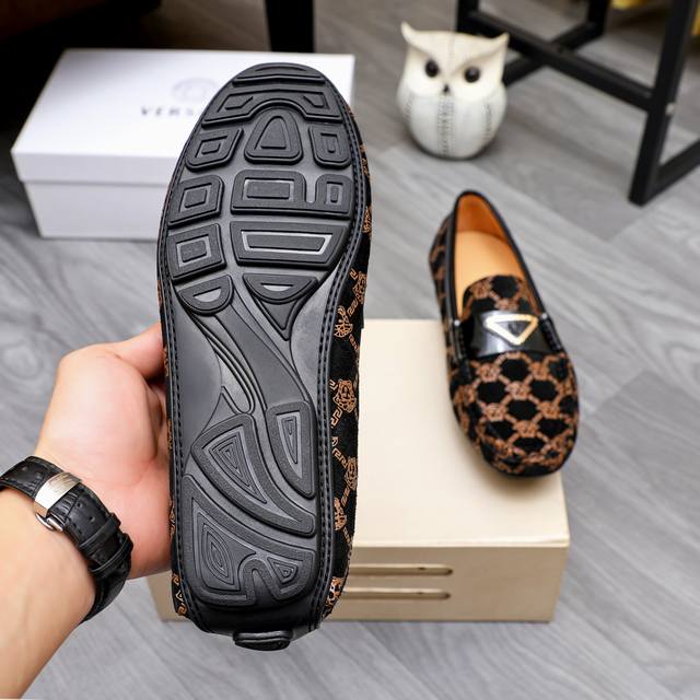 工厂价 VERSACE 范思哲 男士新款豆豆鞋上市 原单品质 官网1:1同步高丝光牛反毛皮内里,完美造型顶级品质,橡胶耐磨大底,,鞋型饱满,立体感十足超级百搭 高档不失品味,时尚、新颖 。3色可选!码数:38-44 37.45.46.可订做