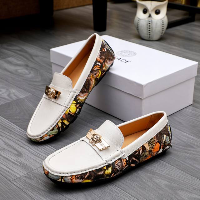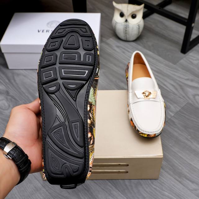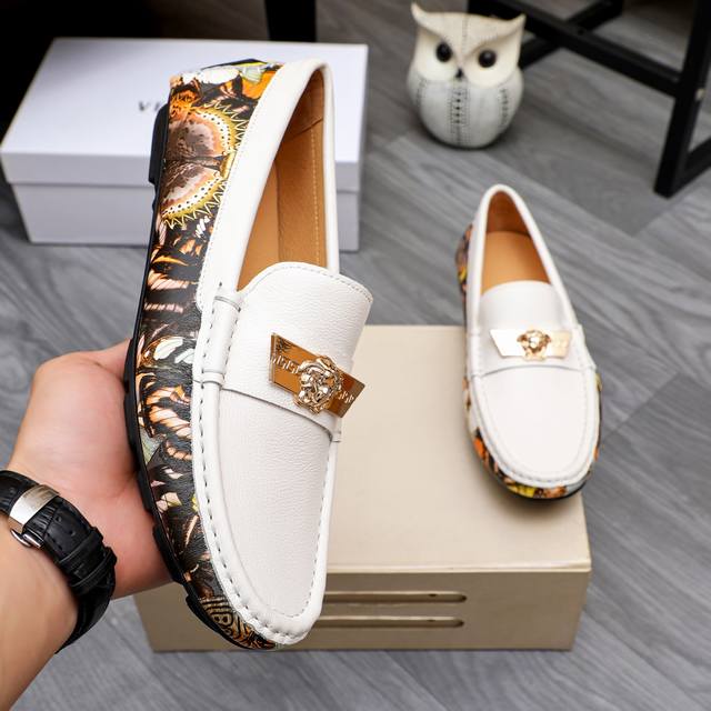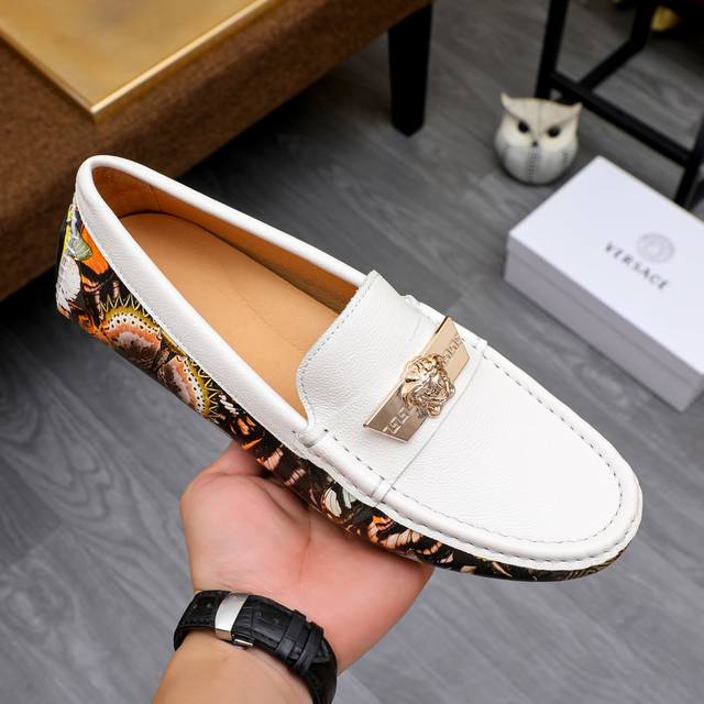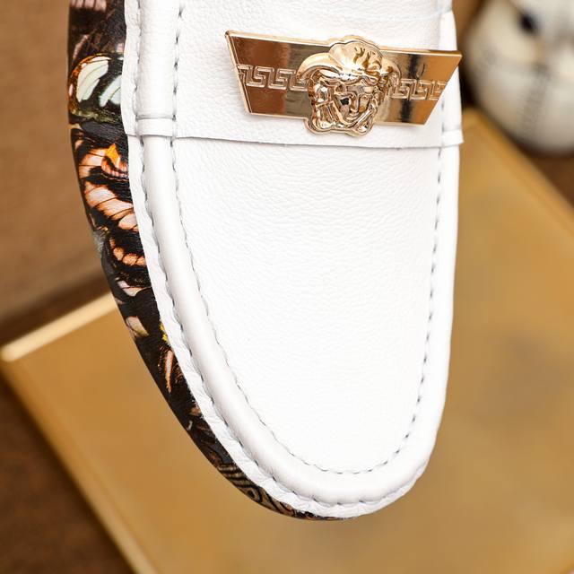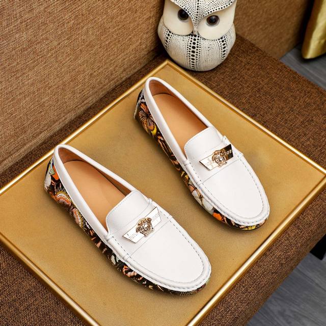 工厂价 VERSACE 范思哲 男士新款豆豆鞋上市 原单品质 官网1:1同步高丝光牛反毛皮内里,完美造型顶级品质,橡胶耐磨大底,,鞋型饱满,立体感十足超级百搭 高档不失品味,时尚、新颖 。白色可选!码数:38-44 37.45.46.可订做
