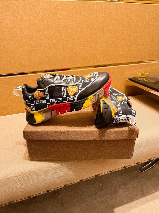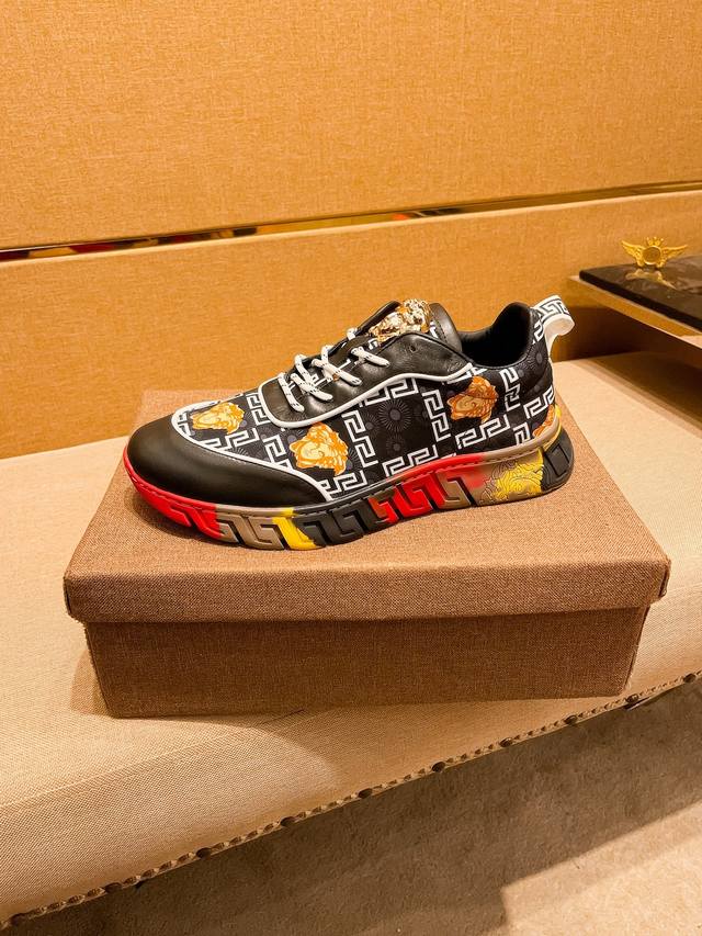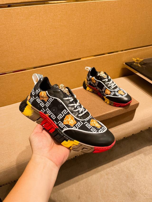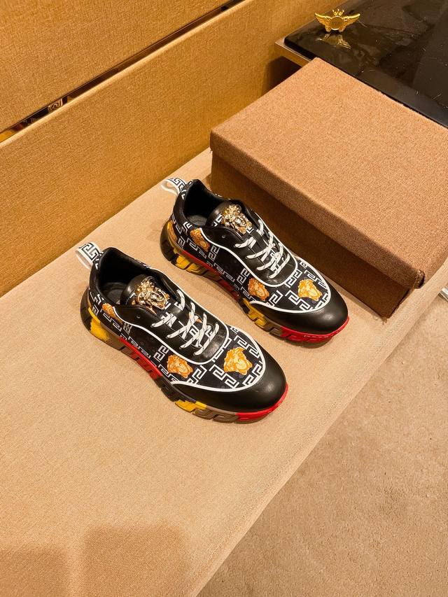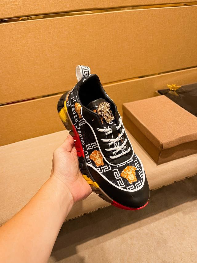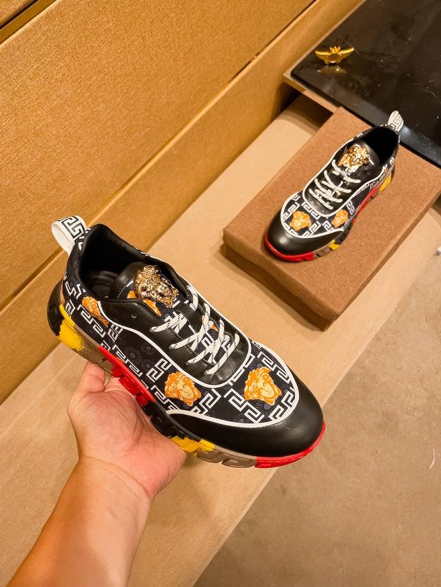 出厂价 Versace 范思哲顶级板鞋系列 新米兰男时装周休闲套脚款 鞋面采用进口小牛皮超滑质感 拒绝褪色磨脚 环保全牛里吸汗透气...