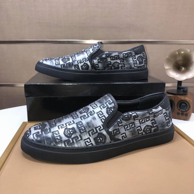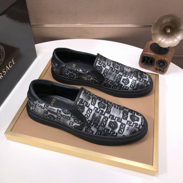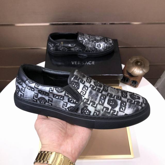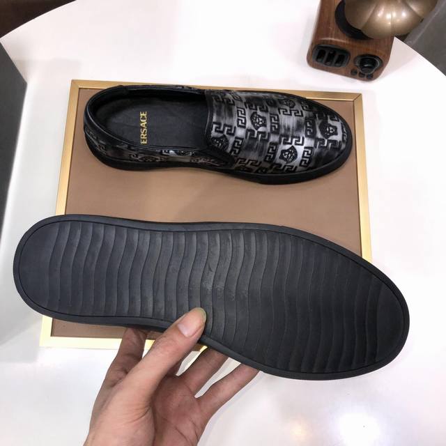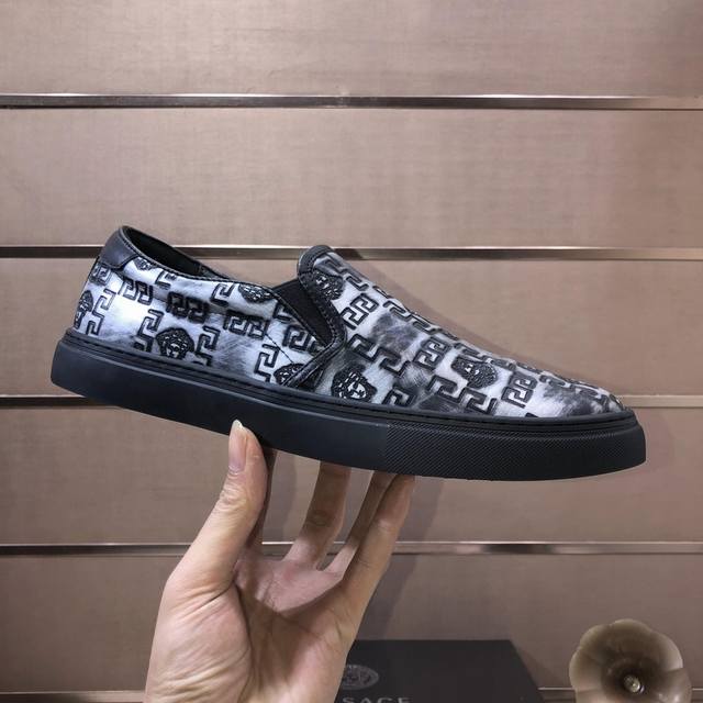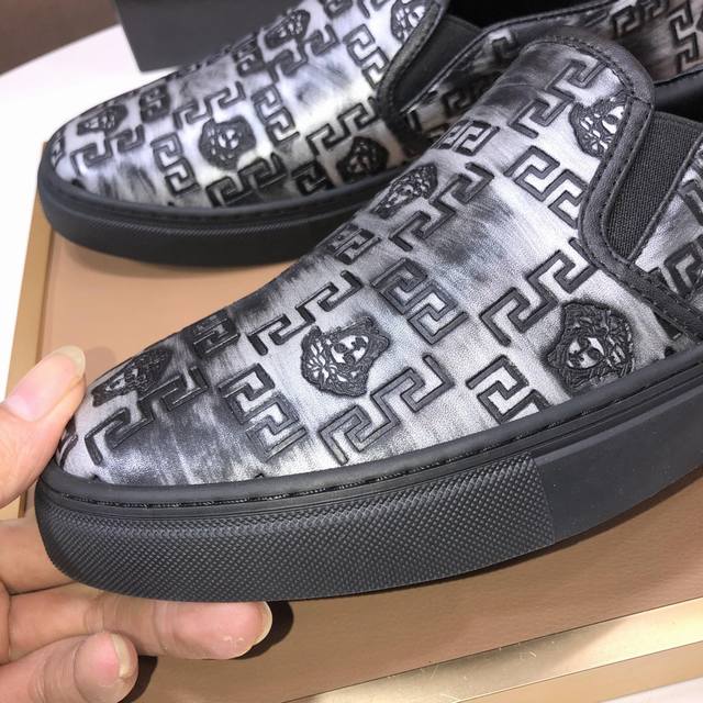 出厂价 Versace 范思哲顶级板鞋系列 新米兰男时装周休闲套脚款 鞋面采用进口小牛皮超滑质感 拒绝褪色磨脚 环保全牛里吸汗透气...