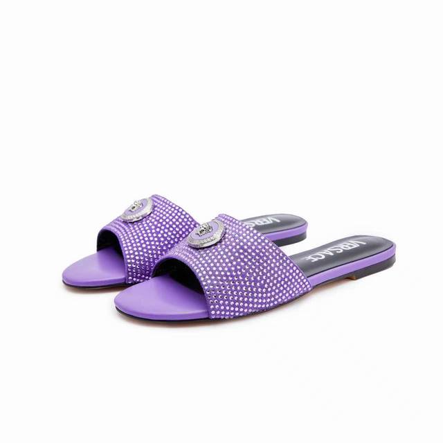 工厂p价 女装女鞋 运动原单 范思哲新款平底满钻拖鞋,码数35-43,44.45订做不退换,