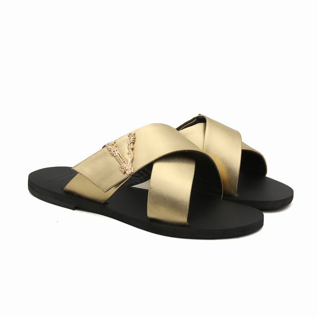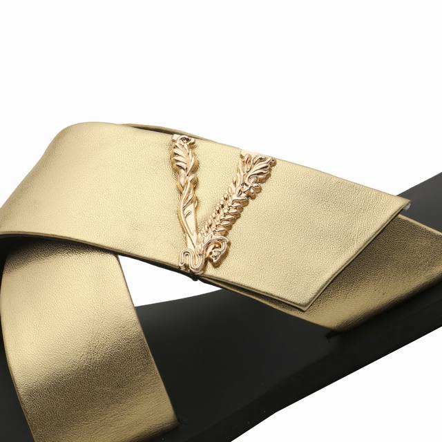 工厂p价 女装女鞋 运动原单 35-43码 范思哲交叉V扣平底凉拖鞋,面料牛皮,内里羊皮,优质橡胶中底,耐磨舒适橡胶大底,着地感平稳,呵护你的双脚,令行走非常方