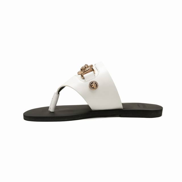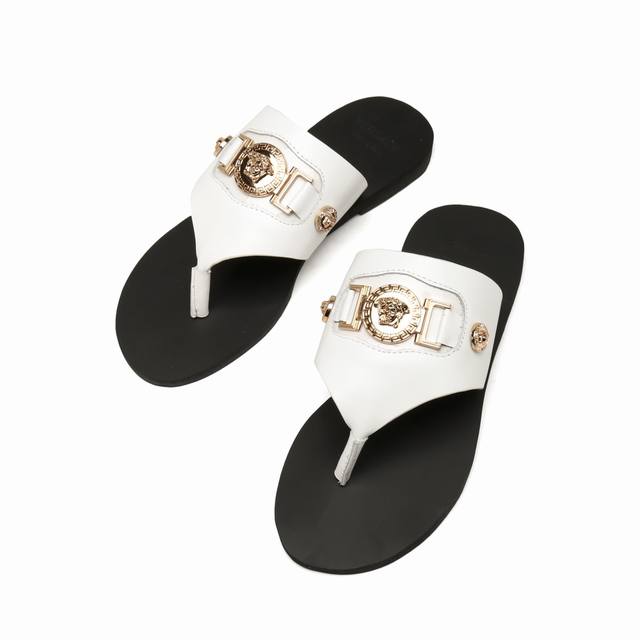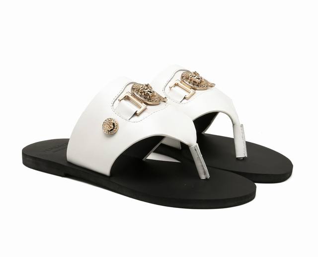 范思哲夹趾凉拖鞋,面料牛皮,内里羊皮,优质橡胶中底,耐磨舒适橡胶大底,着地感平稳,呵护你的双脚,令行走非常方便舒适。