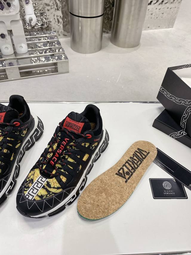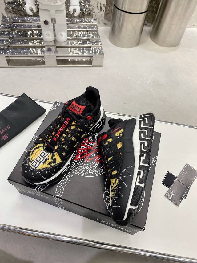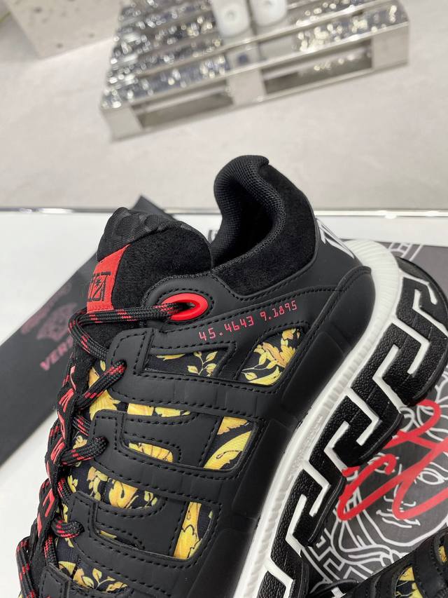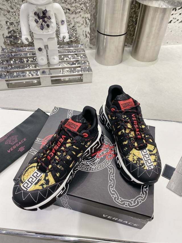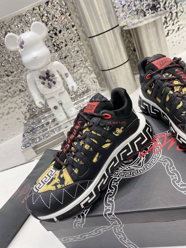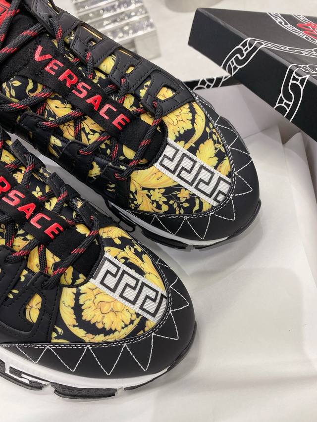 Versace范思哲最新走秀休闲老爹鞋男女码情侣款,原版拼色手工彩绘休闲鞋