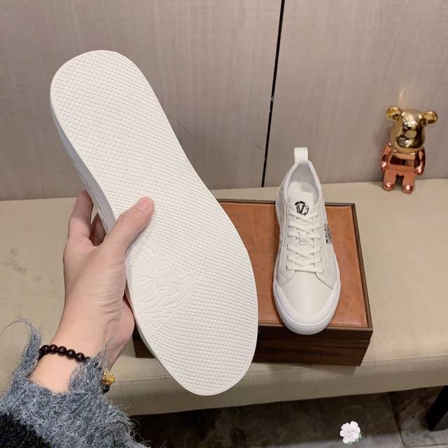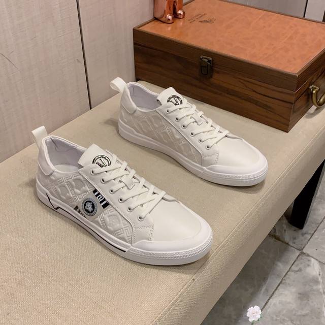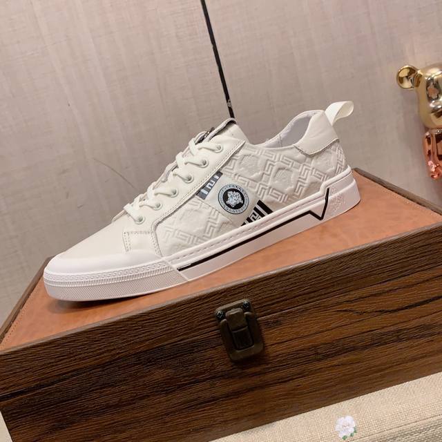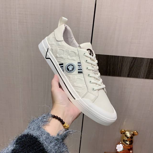 新款: 厂价: 范思哲versace* 最新爆款休闲鞋,顶端品牌奢侈~代购,顶级~质量。鞋面選用进口透气牛皮搭配材质透气猪皮垫脚 精细做工。原版个性时尚柔软橡膠
