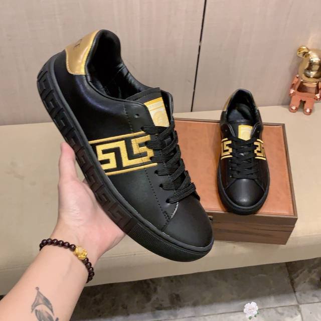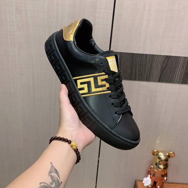 新款: 厂价: 范思哲VERSACE* 最新爆款休闲鞋,顶端品牌奢侈~代购,顶级~质量。鞋面選用进口透气牛皮搭配材质透气羊皮垫脚 精细做工。原版个性时尚柔软橡膠
