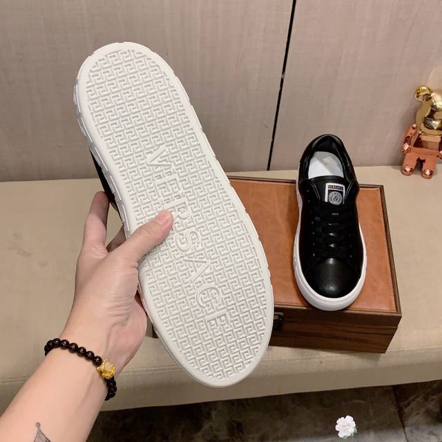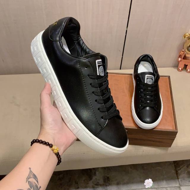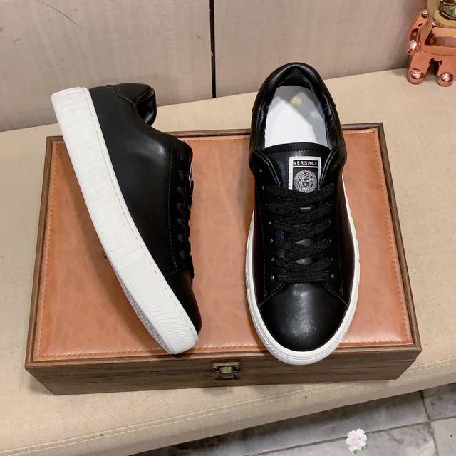 新款: 厂价: 范思哲VERSACE* 最新爆款休闲鞋,顶端品牌奢侈~代购,顶级~质量。鞋面選用进口透气牛皮搭配材质透气羊皮垫脚 精细做工。原版个性时尚柔软橡膠