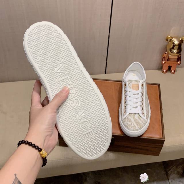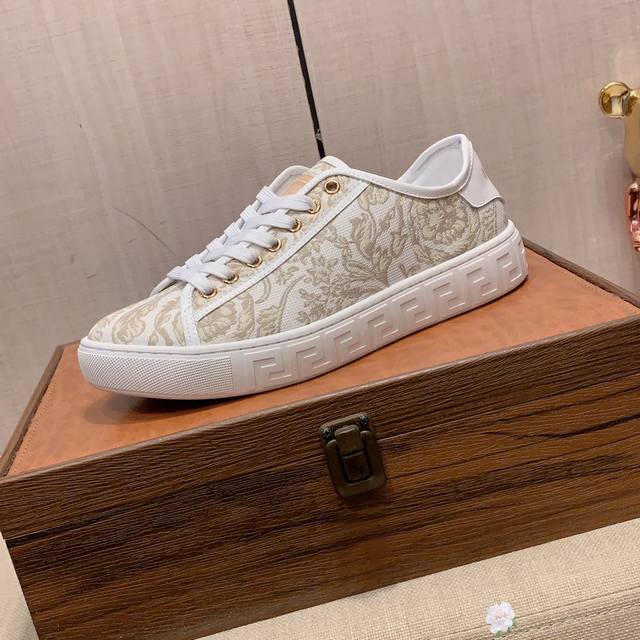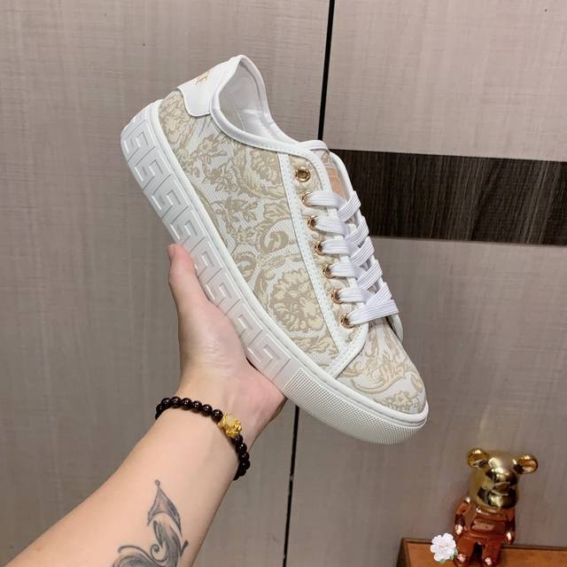 新款: 厂价: 范思哲VERSACE* 最新爆款休闲鞋,顶端品牌奢侈~代购,顶级~质量。鞋面選用进口透气牛皮搭配材质透气羊皮垫脚 精细做工。原版个性时尚柔软橡膠