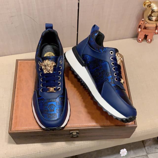 / 新款: 厂价: 范思哲versace* 最新爆款休闲鞋,顶端品牌奢侈~代购,顶级~质量。鞋面選用进口透气牛皮搭配材质透气羊皮垫脚 精细做工。原版个性时尚柔软橡膠