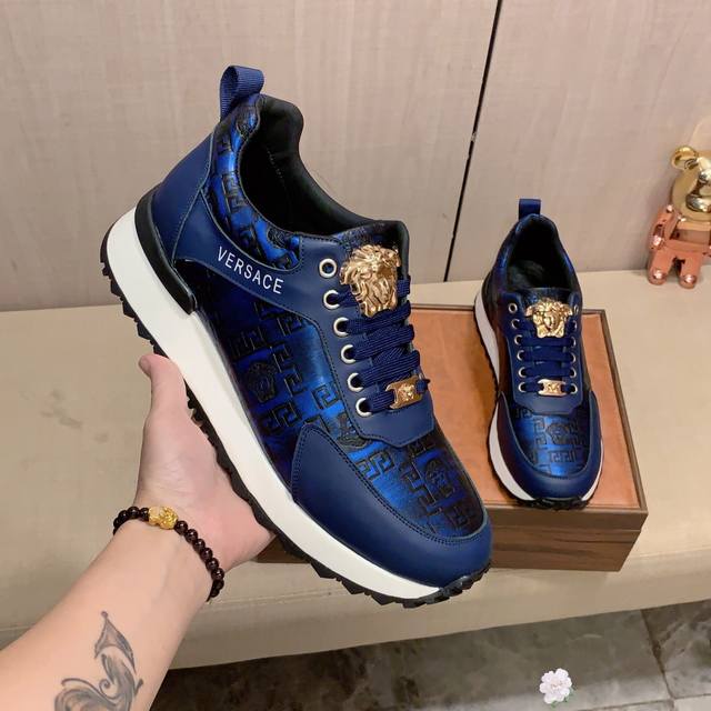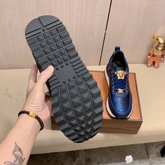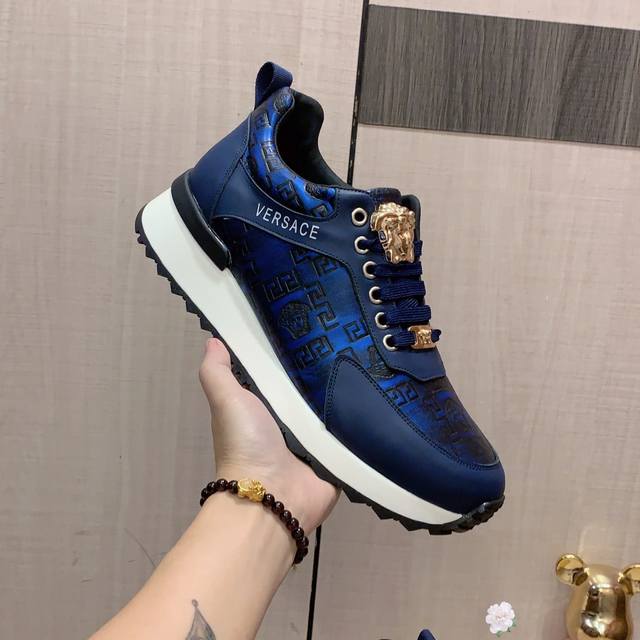 新款: 厂价: 范思哲versace* 最新爆款休闲鞋,顶端品牌奢侈~代购,顶级~质量。鞋面選用进口透气牛皮搭配材质透气羊皮垫脚 精细做工。原版个性时尚柔软橡膠