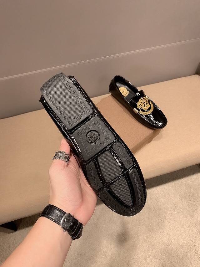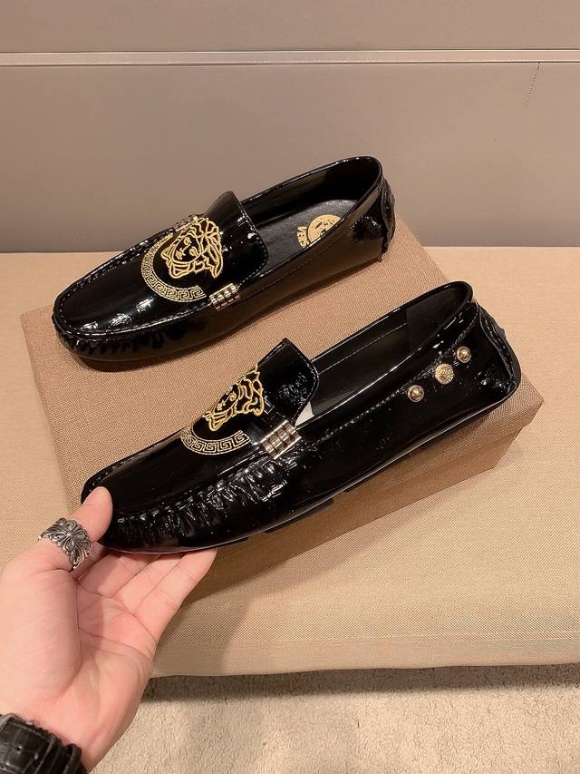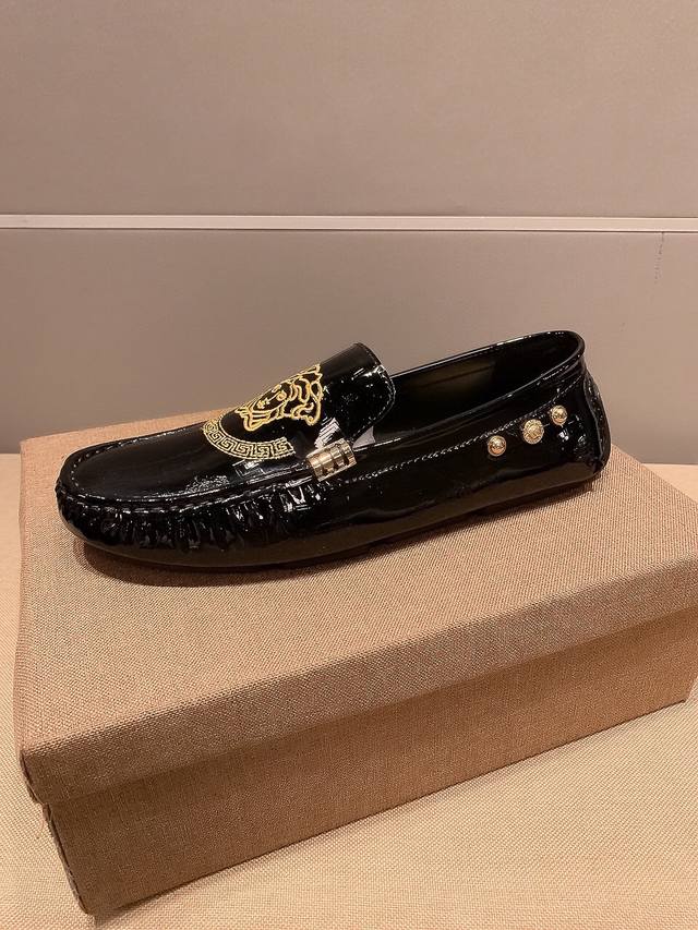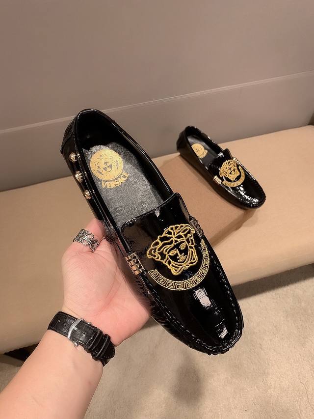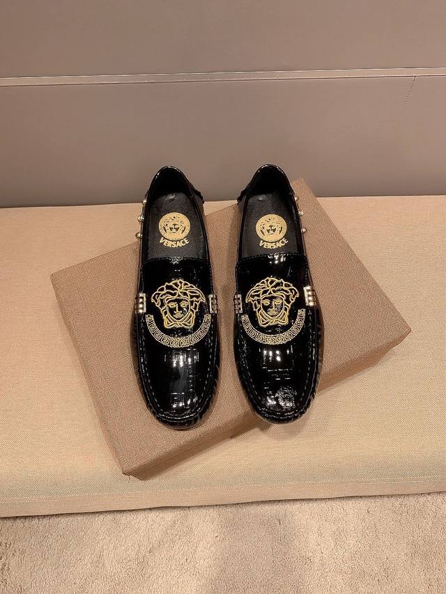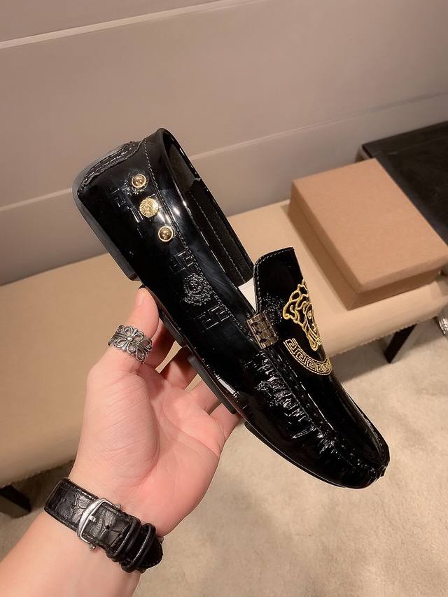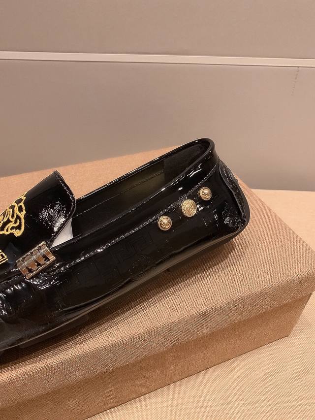 范思哲不同凡响,惊世骇俗,又一杰作,范思哲 Versace 创造了一个独特的时尚帝国,风靡全球。鞋面采用进牛皮+绣范思哲品牌花+侧边三颗范思哲品牌金属扣,超美大