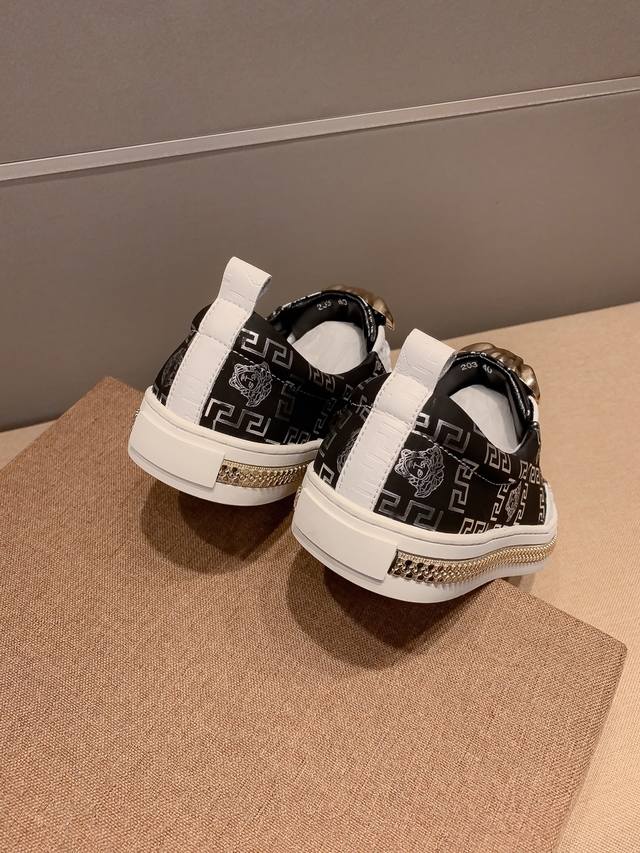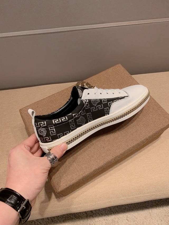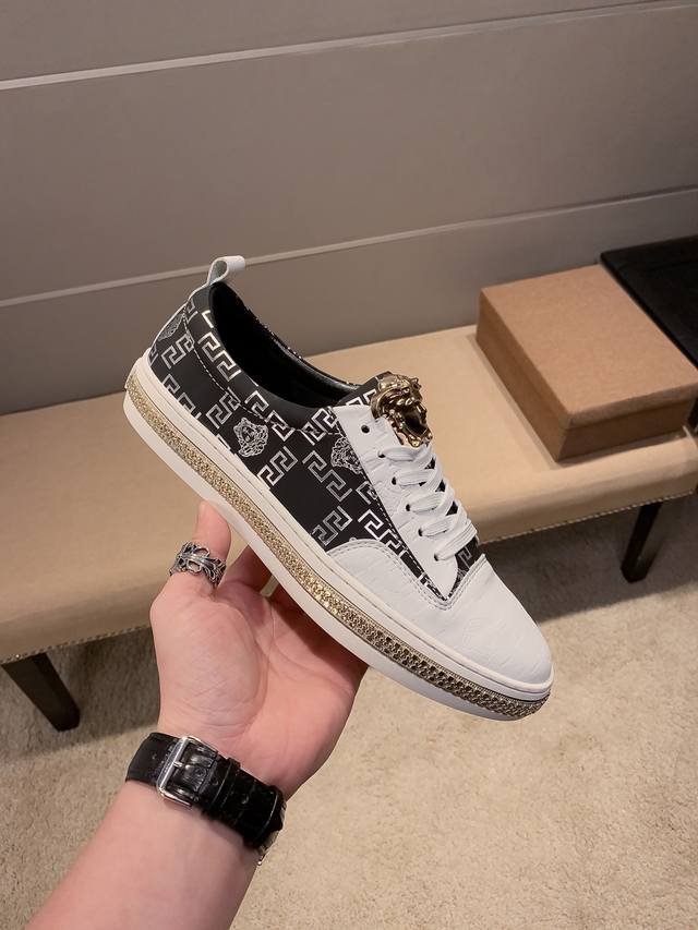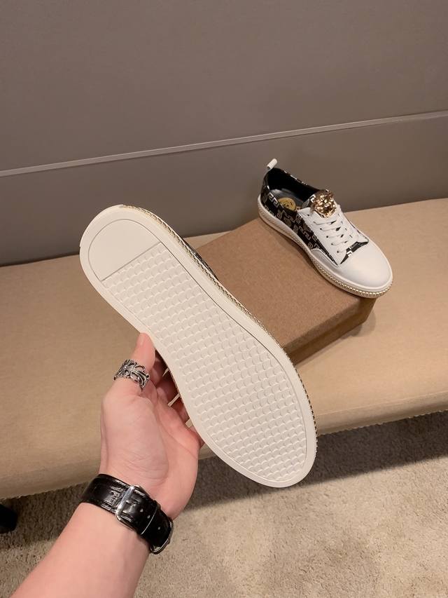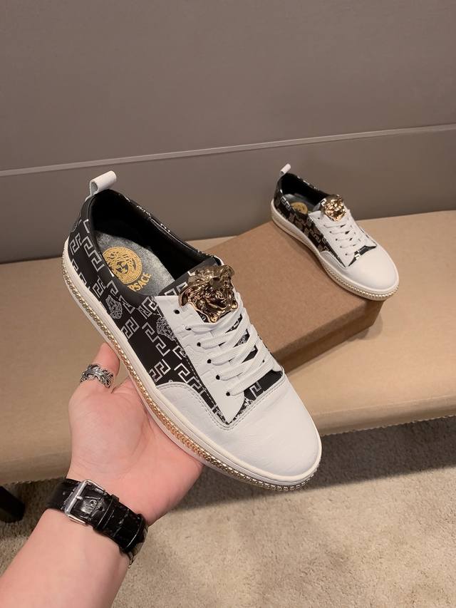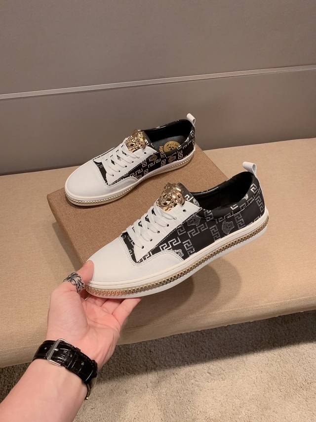 Verace 范思哲男士四季休闲鞋,最新元素潮爆全球,官网火爆热卖,原版版本,专柜一比一,鞋面意大利进口原版头层牛皮性感美灶莎头像金属扣,原版防滑大底,舒适透气吸汗羊皮内里垫脚,舒适以质量说话,送人双倍面子 标准码37-45
