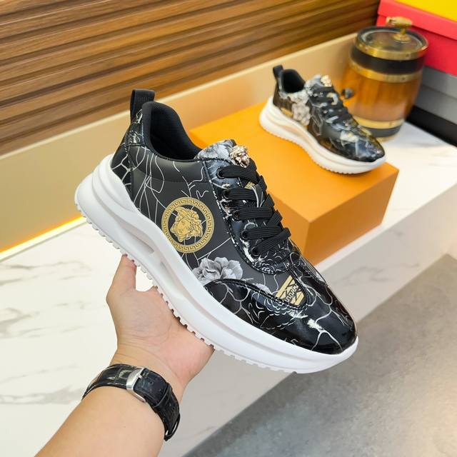 VERSACE 范思哲新款运新款,ss米兰男时装周走秀款,鞋面进口花皮搭+吸汗透气不掉色头层穿舒服超滑质感,吸汗透气 ,原版质量大底,鞋身LOGO美杜莎头,高级