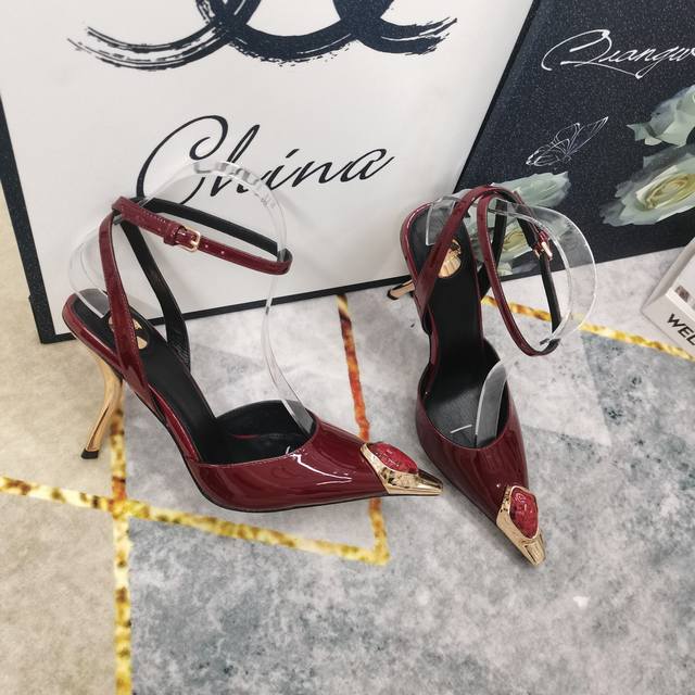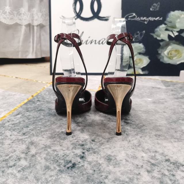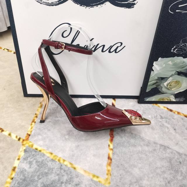 2025新款鞋头镶钻装饰酒杯跟凉鞋