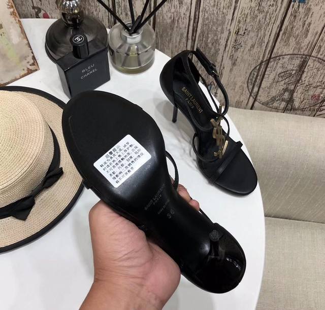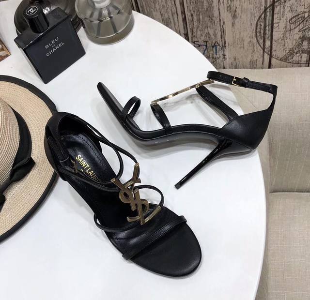 冲量价: Saint Laurent 圣罗兰、早春最新款、Ysl、Logo字母金属扣装饰凉鞋 经典上乘美艳力作 兼备气质 时尚 经典耐看的设计风格 。上脚效果特别美面料采用进口牛漆皮 牛皮。内里 垫脚采用进口羊皮、跟高10.5Cm,