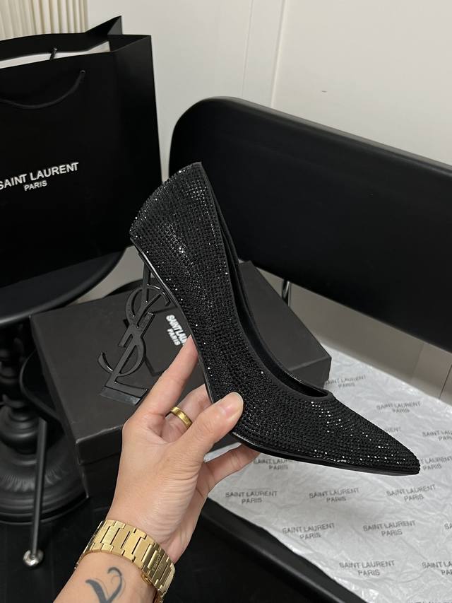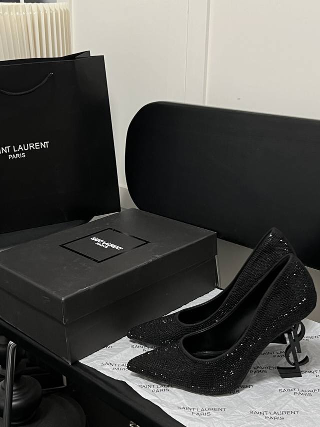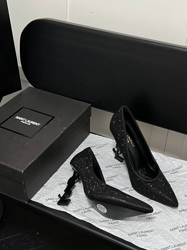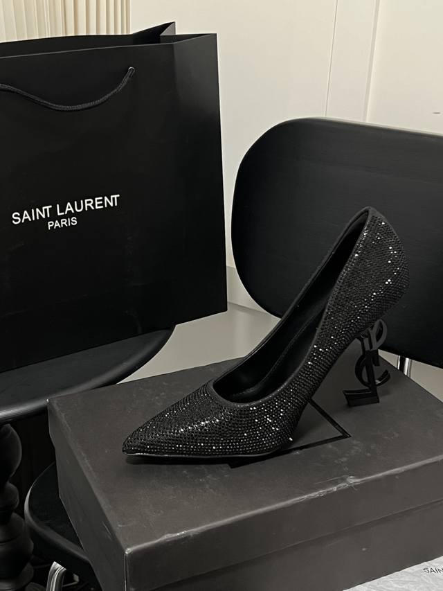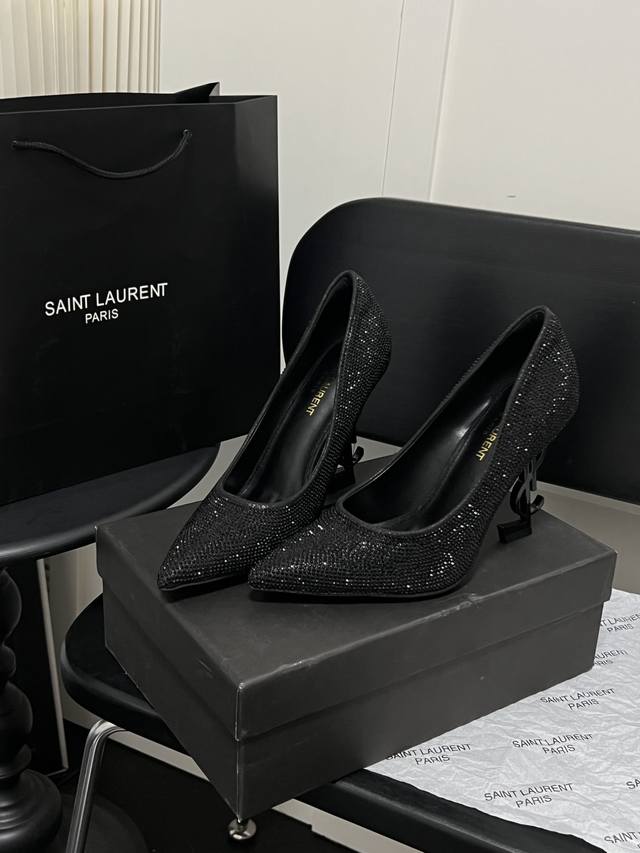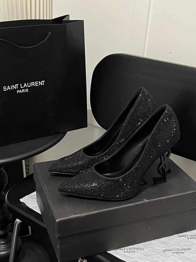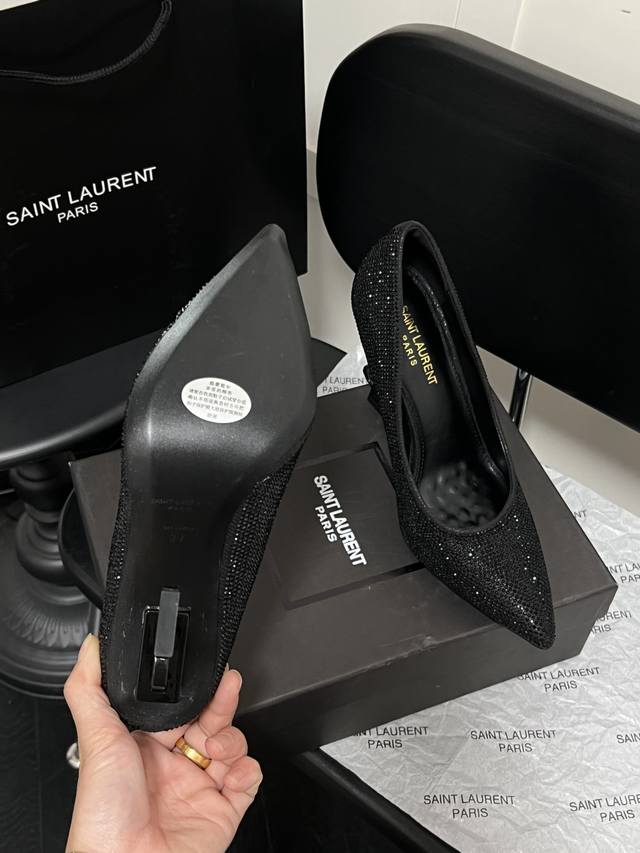 Saint Lauren 圣罗兰 Ysl鞋跟尖头钻面高跟鞋单鞋