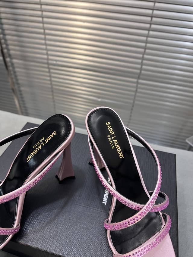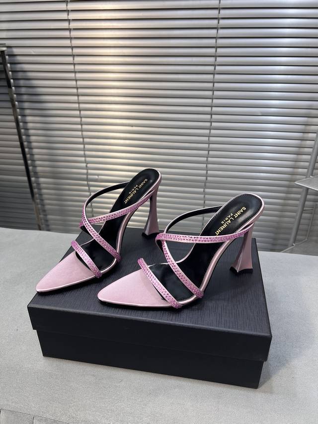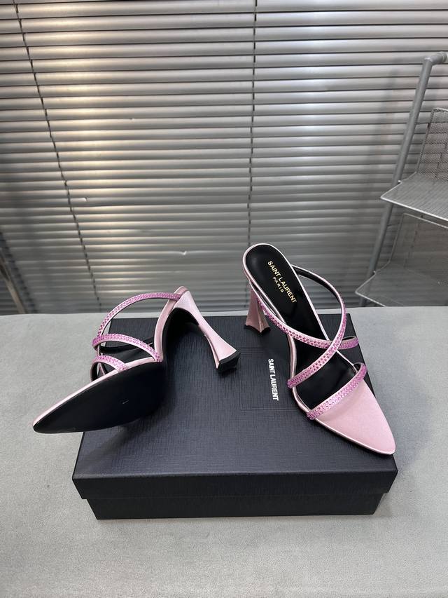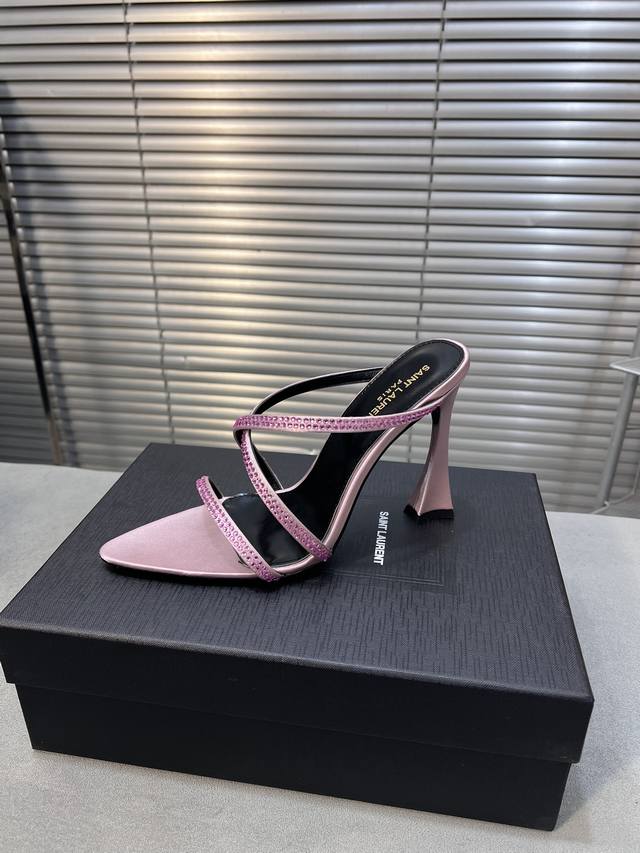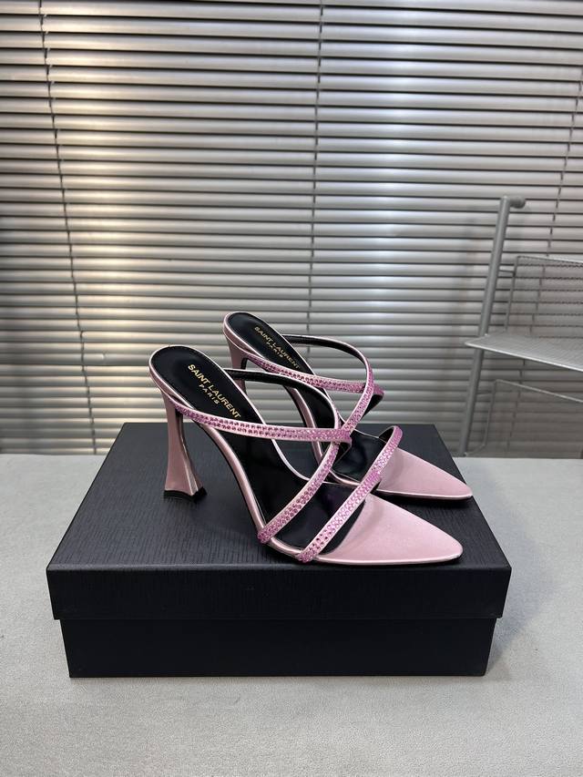 Saint Laurent 圣罗兰春夏新款烫钻交叉高跟凉鞋尖头高跟鞋!