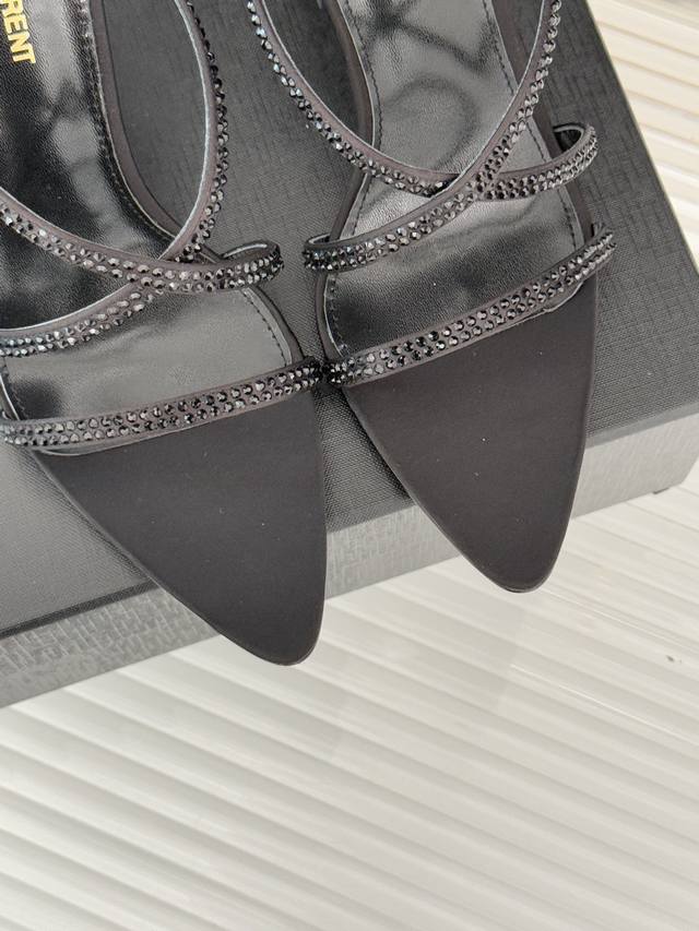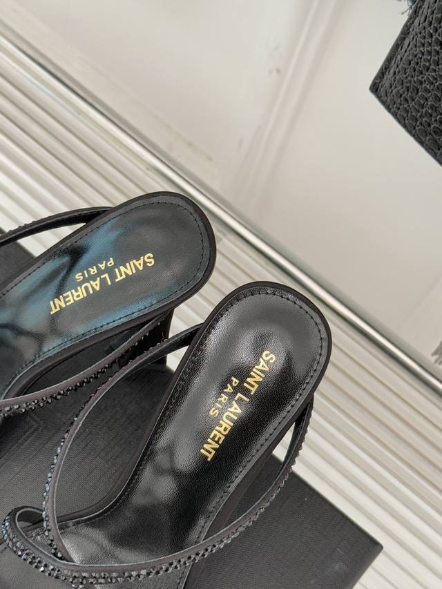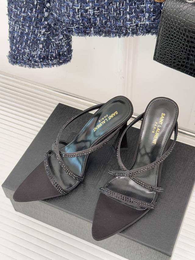 厂价p Saint Lauren*Ysl圣罗兰 25Ss尖头水钻高跟半拖 鞋面采用进口真丝烫钻 内里踮脚混种羊皮 意大利进口真皮大底 Size:35-39 34