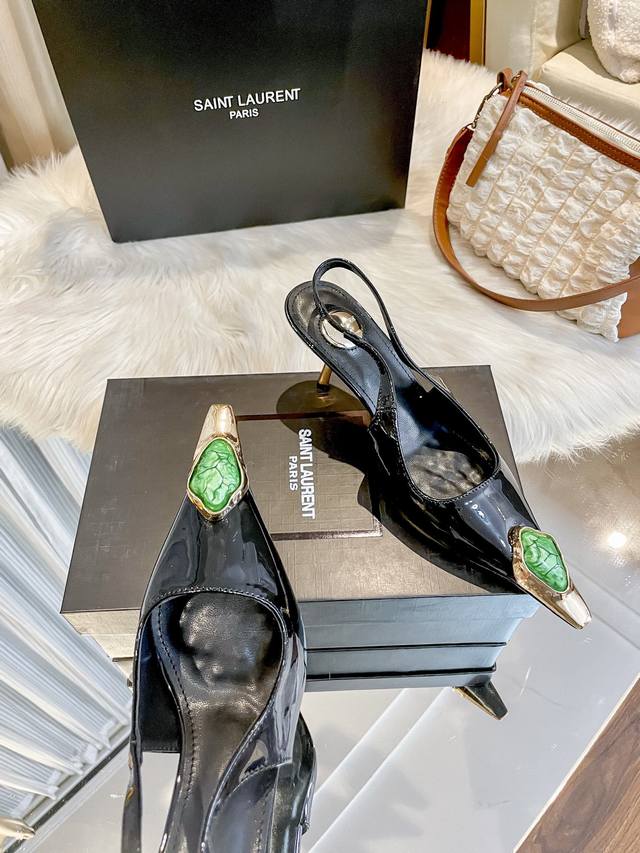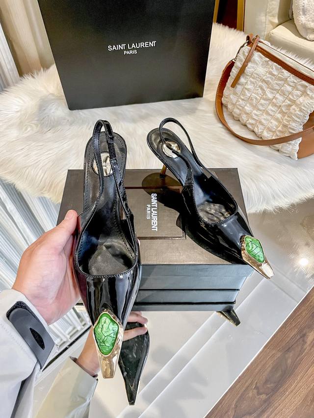 2025圣罗兰ysl早春新品方头绿宝石优雅大气高跟 各种小裙子搭配起来 完全不挑脚型哦 通透的闪钻在光线的照耀下呈现幻彩...