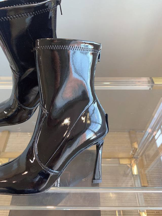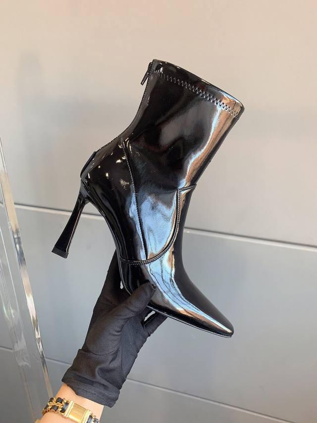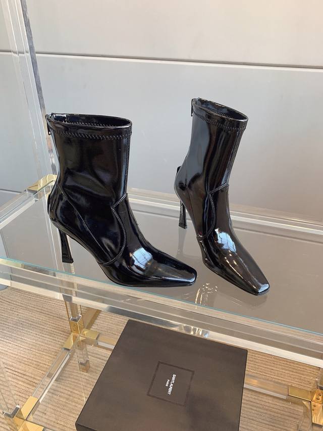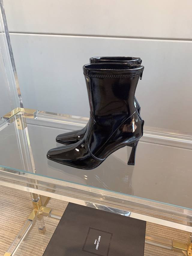 短靴 长靴 Ysl新款高跟漆皮靴 秋冬百搭显瘦神器 后侧拉链设计方便穿脱 跟高9.5Cm 尺码35-39
