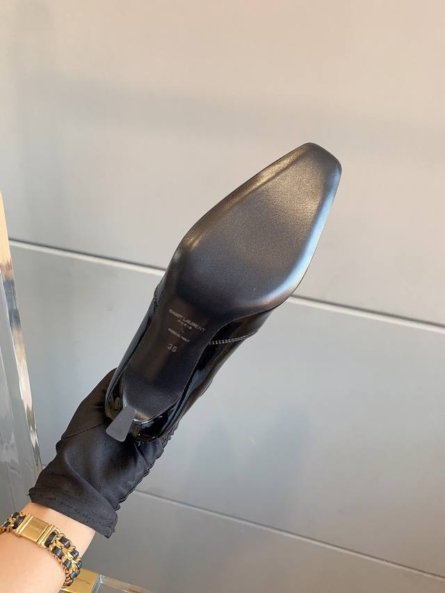 Ysl新款高跟漆皮靴 秋冬百搭显瘦神器 后侧拉链设计方便穿脱 跟高9.5Cm 尺码35-39