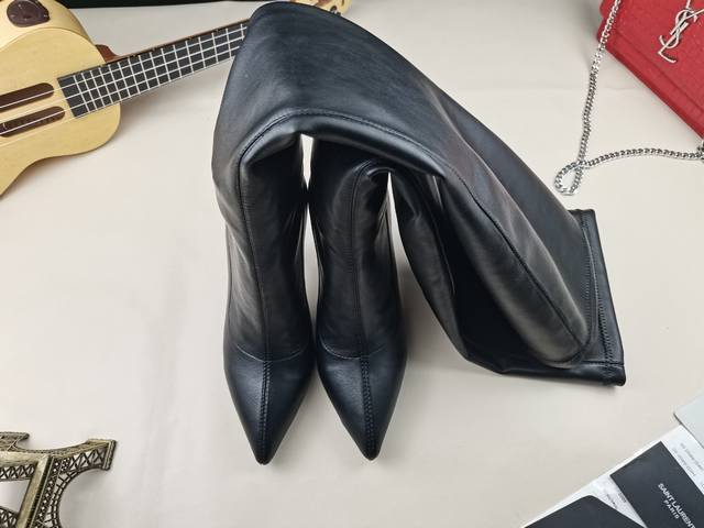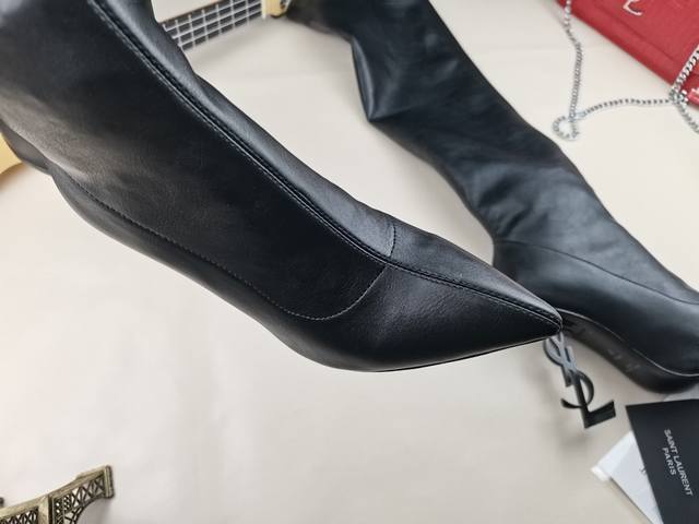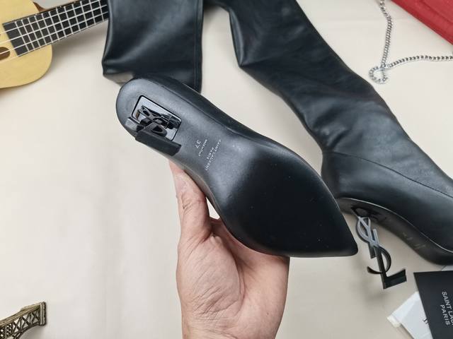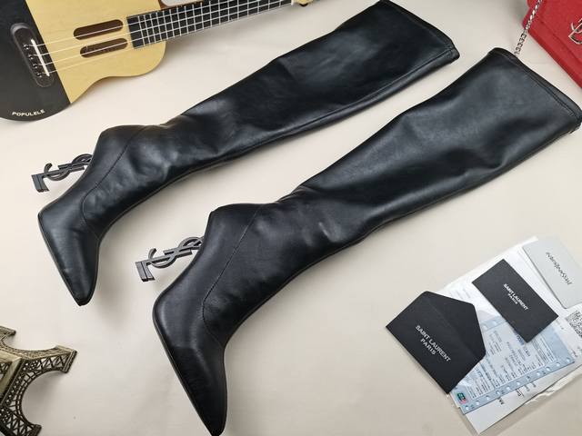 经典款 Saint Laurent 圣罗兰 Ysl字母金属跟22寸长靴,弹力靴 面料:弹力布 内里: 进口绵羊皮 垫脚: 进口山羊 进口意大利真皮大底 超高强度