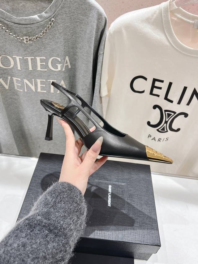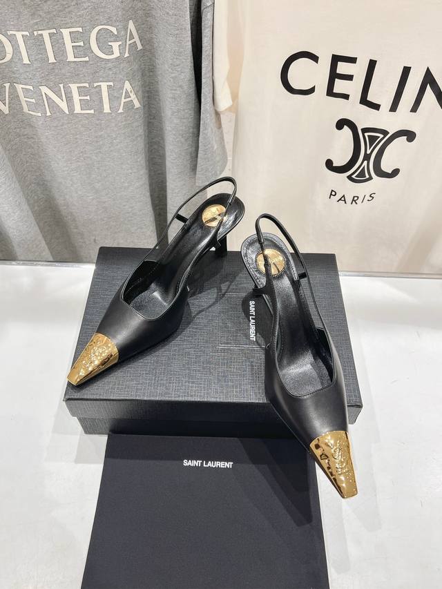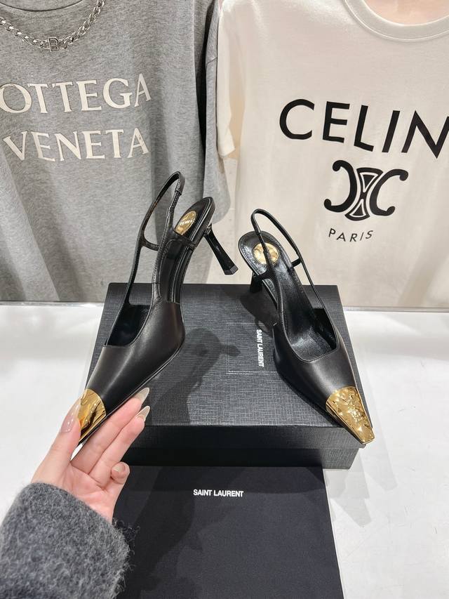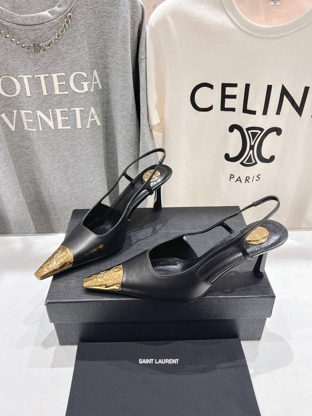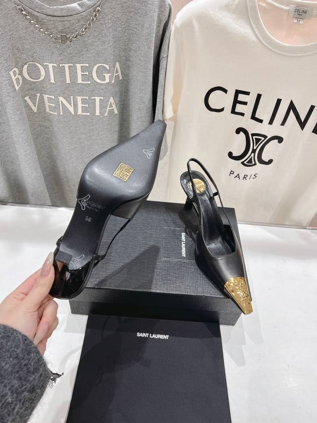 Saint Laurent 圣罗兰ysl 25Ss春夏全新金属小方头高跟鞋凉鞋单鞋~